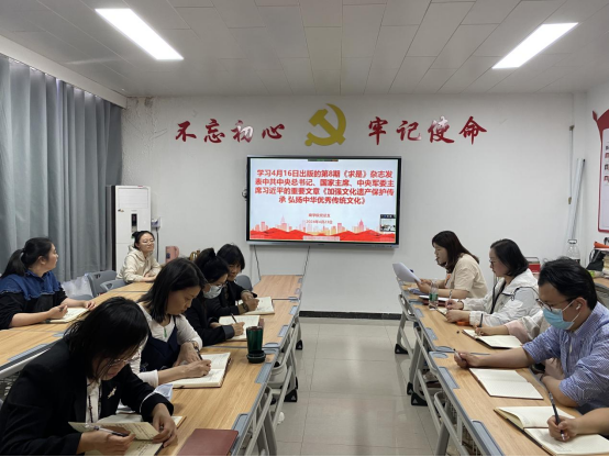 其次,贺苗苗领学了《加强文化遗产保护传承弘扬中华优秀传统文化》,文章指出中华文化是我们提高国家文化软实力最深厚的源泉,也是我们提高国家文化软实力的重要途径。要使中华民族最基本的文化基因与当代文化相适应、与现代社会相协调,以人们喜闻乐见、具有广泛参与性的方式推广开来。