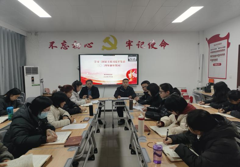 首先,学工办主任刘超老师领学了《国家主席习近平发表二零二四年新年贺词》,在新年贺词中,指出人民是历史的创造者,人民是真正的英雄,中华民族5000多年砥砺前行,是中国人民书写了波澜壮阔的发展史、创造了博大精深的中华文明。新中国成立以来,多少闯关夺隘、多少无畏探索,亿万人民尽锐出战,以澎湃伟力推动发展实践,让“中国号”巨轮乘风破浪、行稳致远。进入新时代,党团结带领全国各族人民自信自强、守正创新,成功推进和拓展了中国式现代化,实现中华民族伟大复兴进入了不可逆转的历史进程。