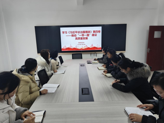 最后,张天娇老师领学了《习近平谈治国理政》第四卷——推动“一带一路”建设高质量发展。文章强调,中国共产党将团结带领中国人民全面深化改革和扩大开放,为世界各国共同发展繁荣作出新贡献。当前,经济全球化虽然面临不少阻力,但存在更多动力,总体看,动力胜过阻力,各国走向开放、走向合作的大势没有改变、也不会改变。中国共产党愿同各国政党加强沟通,共同引导经济全球化朝着更加开放、包容、普惠、平衡、共赢的方向发展。