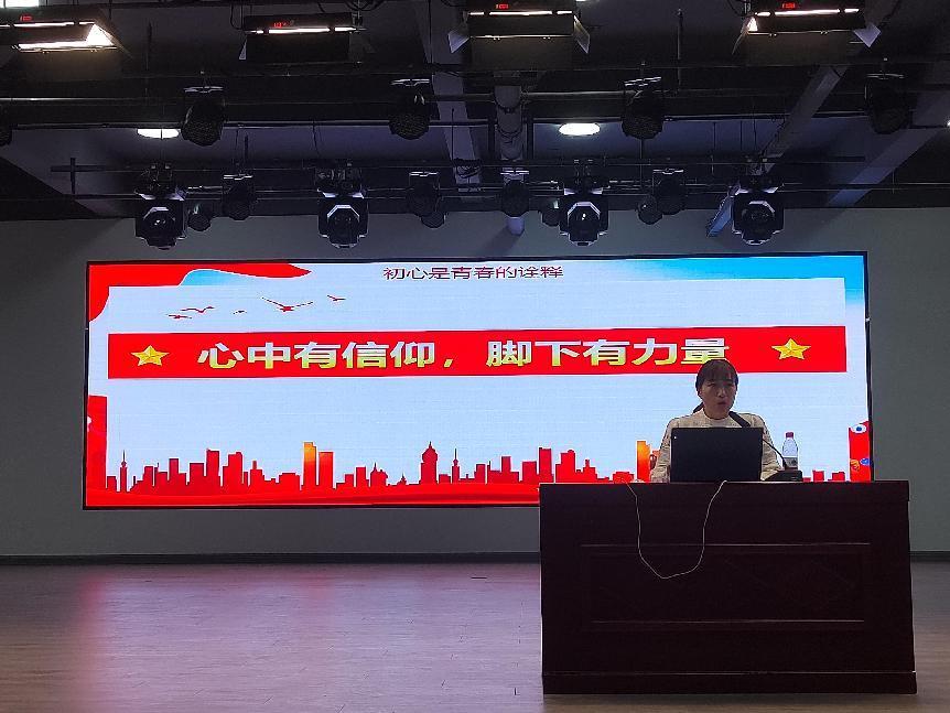 张天娇以“学习贯彻习近平总书记关于青年工作的重要思想”为主题。主要传达了党的青春特质是时代新青年的精神支柱和力量源泉,也是时代新青年的成长成才的重要保障。同时对于时代新青年的成长成才具有重要的实践意义。