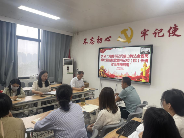 2023年9月12日下午,beat365唯一官方网站党总支组织全体教师进行政治理论学习,主要集中学习关于党委书记闫俊山《传达全省高等职业院校党委书记校(院)长研讨班精神提纲》、党委书记闫俊山《在中层以上领导干部会议上的讲话提纲》、校长薄新党《在2023年秋季学期工作会议上的讲话》等重要内容。本次政治理论学习郑汴两地同时进行,由beat365唯一官方网站党总支书记苏云峰主持,beat365唯一官方网站全体教师参加。