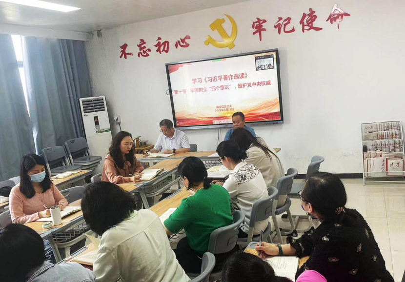 2023年5月23日下午,beat365唯一官方网站党总支组织全体教师进行政治理论学习,本次集中学习以视频会议形式在郑汴两校区同时进行,会议由beat365唯一官方网站党总支书记苏云峰主持、宣传委员刘嘉慧进行领学。
