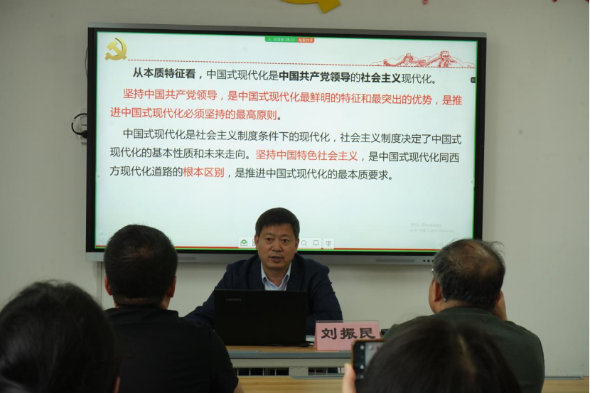 在研讨过程中,刘振民在交流研讨时指出,要及时跟进学习党的创新理论,坚持中国式现代化的根本遵循,牢记中国式现代化的鲜明特色,强调中国式现代化的重大原则以及重大关系,培养中国式现代化的思想含蕴。作为培养德智体美劳全面发展的社会主义建设者和接班人,要积极回应现代化国家建设战略需求,锚定“高水平研究型大学”定位目标,发挥好“教育、科技、人才”三位一体支点作用,在科技自立自强和产教融合、科教融合先行先试上主动担当作为,书写中国式现代化和教育强国建设的华丽篇章。
