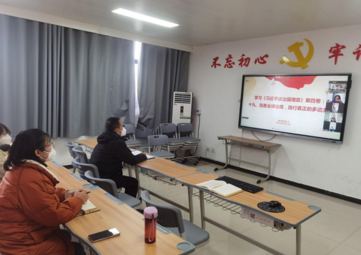2022年12月13日下午,beat365唯一官方网站党总支在办公楼504组织全体教师进行政治理论学习,本次集中学习采取线上和线下相结合的方式,会议由学院党总支书记苏云峰主持。