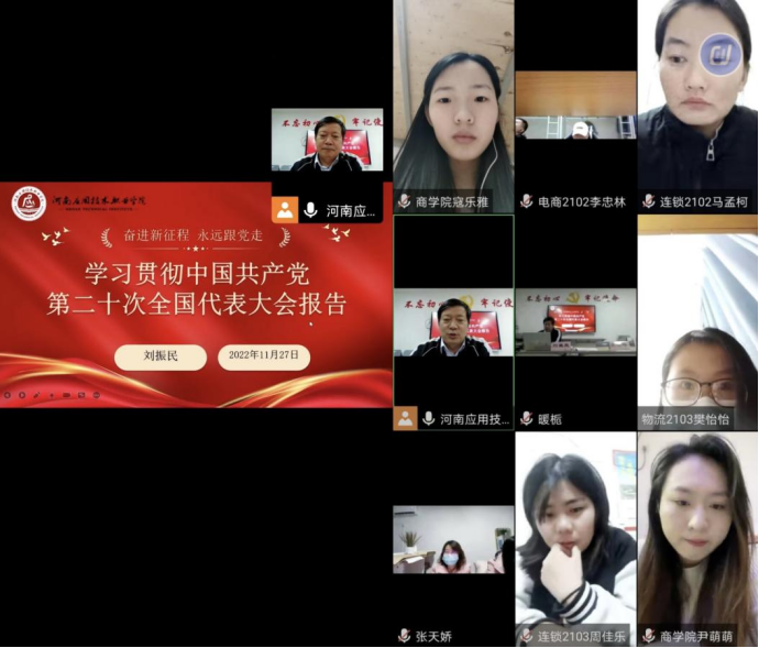 2022年11月27日,校党委委员、副校长刘振民以“学习党的二十大精神,争做新时代好青年”为主题,为beat365唯一官方网站师生讲授党的二十大精神专题思政课。