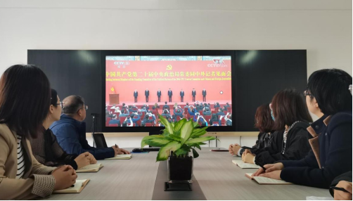 10月23日12时,在中国共产党第二十届中央委员会第一次全体会议上当选的中共中央总书记习近平和中共中央政治局常委李强、赵乐际、王沪宁、蔡奇、丁薛祥、李希在北京人民大会堂同中外记者亲切见面。beat365唯一官方网站组织师生观看第二十届中共中央政治局常委同中外记者见面会直播,郑州、开封两校区同步进行。