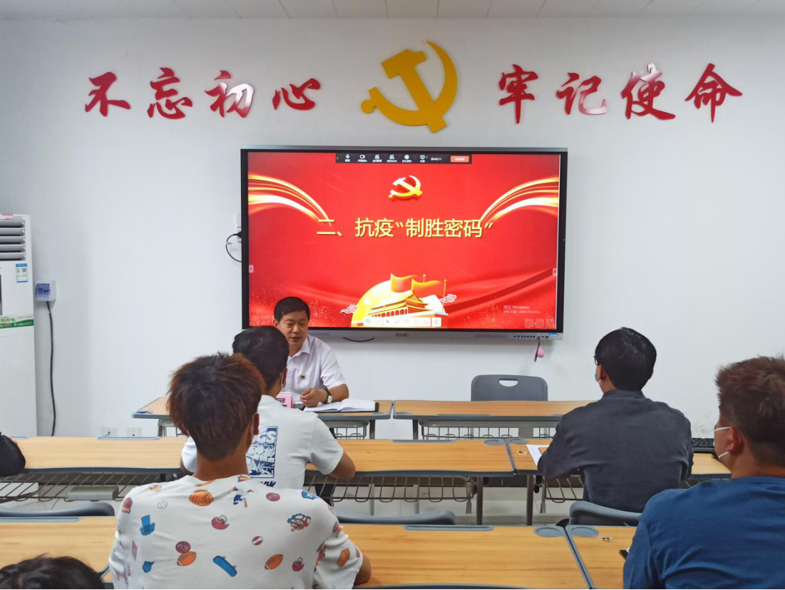 人无精神则不立,国无精神则不强。新冠肺炎疫情形势仍然严峻,为进一步巩固校园疫情防控成果,坚定师生战疫必胜信念,5月18日下午,副校长刘振民在办公楼504为beat365唯一官方网站党员师生上了一堂生动的弘扬抗疫精神专题思政课。本次思政课由beat365唯一官方网站党总支书记周燕主持,预备党员以及部分入党积极分子代表线下参加,其余入党积极分子线上同步进行学习。