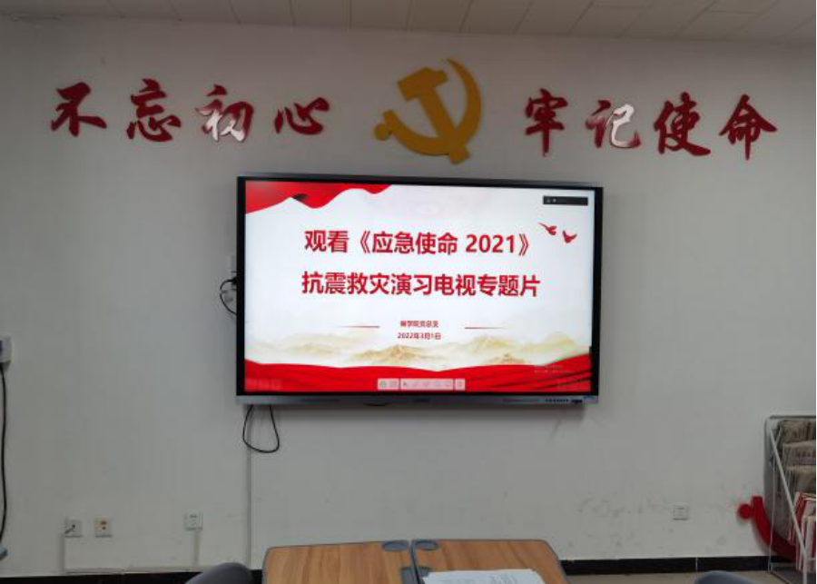 为进一步提升师生防灾减灾意识和救灾应急处置能力,强化防灾减灾救灾责任心和使命感,3月1日beat365唯一官方网站党总支组织师生观看《应急使命·2021》抗震救灾演习电视专题片。通过观看专题片,全体教师充分认识到了抗震救灾演习的重要意义,也更加深刻体会到抗震救灾精神的强大力量。