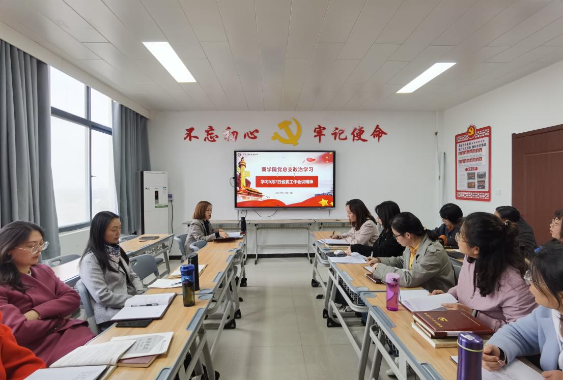 总支书记周燕谈到:这次召开的省委工作会议是在全面建设社会主义现代化河南新征程开局起步的关键节点上,在河南灾后重建和疫情防控双重冲击下奋力实现全年经济社会发展目标的特殊背景下召开的一次重要会议。楼阳生书记的讲话站位高、谋划远、针对强、招数硬,提出很多前瞻性的理念。尤其是会议提出了“两个确保”,确保高质量建设现代化河南,确保高水平实现现代化河南,提出了全面实施十大战略,目标明确、理念新颖、内容务实,开阔了思路、拓展了视野,对全省发展进行了最全面的谋篇布局,为高质量建设现代化河南、高水平实现现代化河南指明了方向,也为学校未来发展创造了机遇。下一步我们要在人才培养和输送上抢抓机遇,找准定位,以只争朝夕的紧迫感、干事创业的精气神,以高质量发展为切入点、关键点、突破点,认真思考商科专业未来发展趋势和人才需求,推动学校人才培养工作“起高峰”、“建高地”,在实现“两个确保”、实施“十大战略”中,奋力推动中原更加出彩中做出河南应院的贡献。