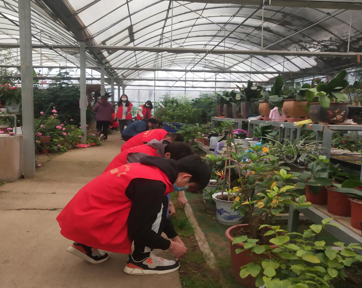 3月12日下午,五一公园内绿植花房里,到处都是身着红色马甲志愿者,他们弯腰弓背,清理花房里的垃圾,在工作人员的指导下为绿植松土、浇水、施肥、修整,补种花草,清理枯叶等等。很多同学是第一次干这种农活,有些还需要花房里工作人员示范演示,但他们虚心接受指导,不挑活,不怕脏,不怕累。尽管手指上沾满了泥巴,脸上却露出会心的笑容。志愿服务持续了两个多小时,同学们带走了花房里的“不速之客”,留下了绿色、整齐与美丽,留下了志愿服务的爱心与奉献。