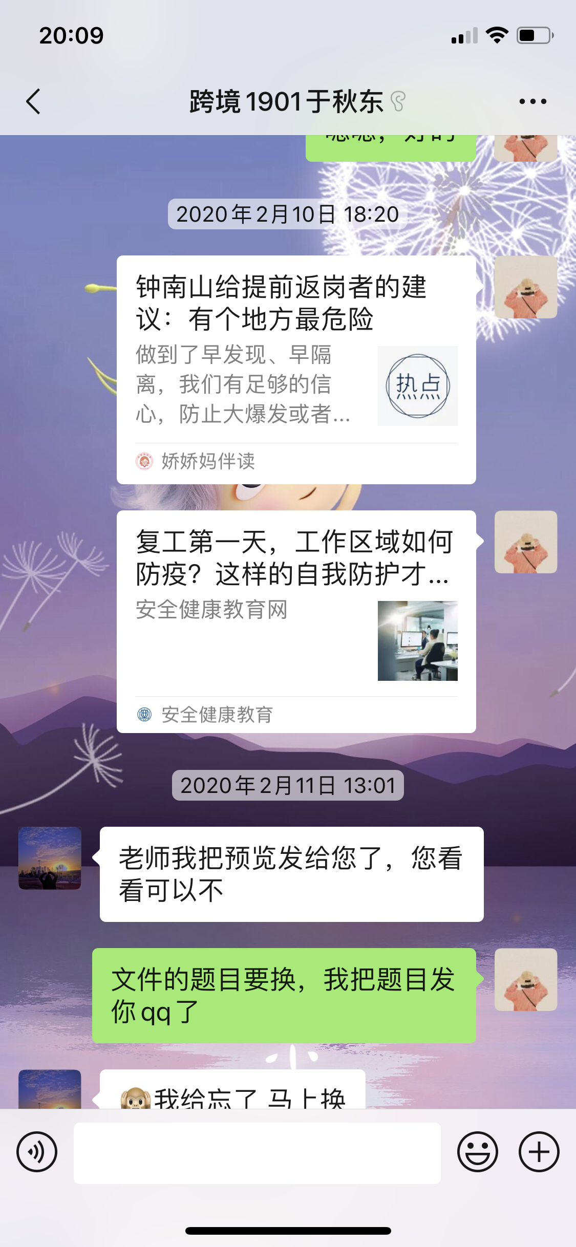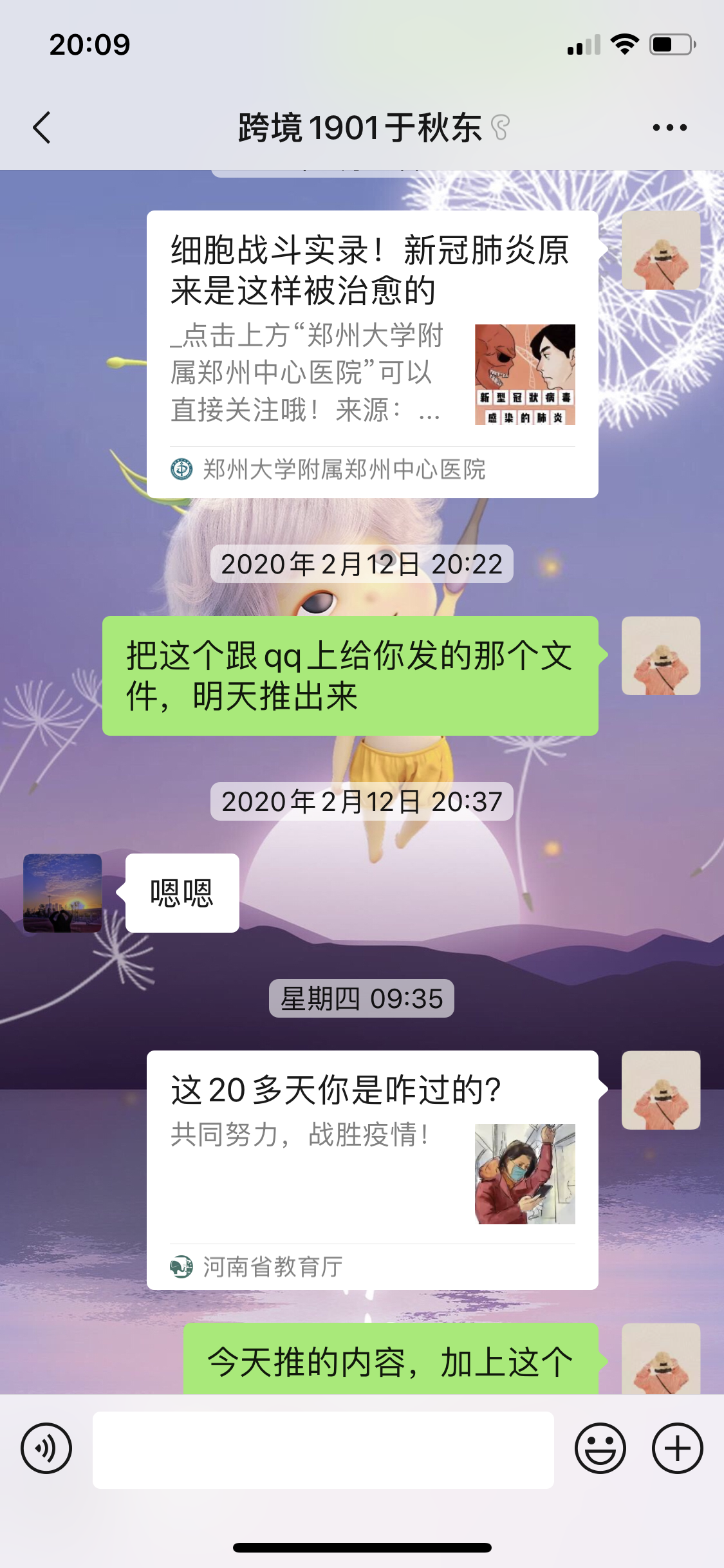 跟学生沟通微信推送疫情新闻