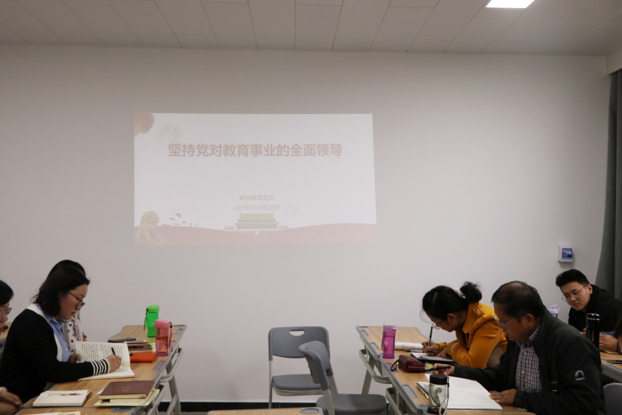 “党政军民学,东西南北中,党是领导一切的”。加强党的领导是做好教育工作的根本保证。为了学习贯彻习近平总书记关于教育相关指示精神,2019年10月22日,beat365唯一官方网站全体专兼职教师一起聆听了党总支书记孙勇院长的主题党课——“坚持党对教育事业的全面领导”。