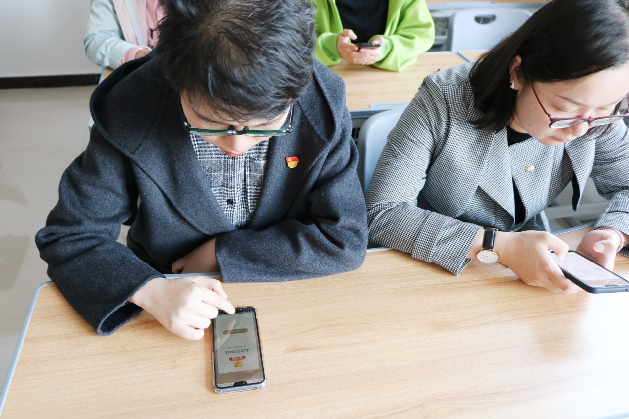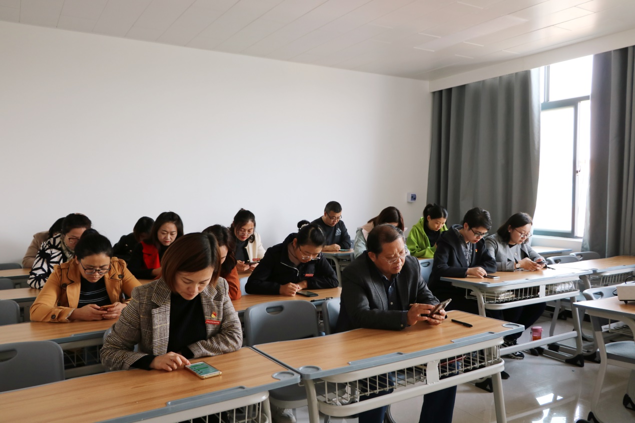 随后,周燕书记讲解了挑战赛的做题规则。各位老师拿出自己的手机,通过“学习强国”APP内的“挑战答题”这一环节,认认真真做题,争取做到最高分。