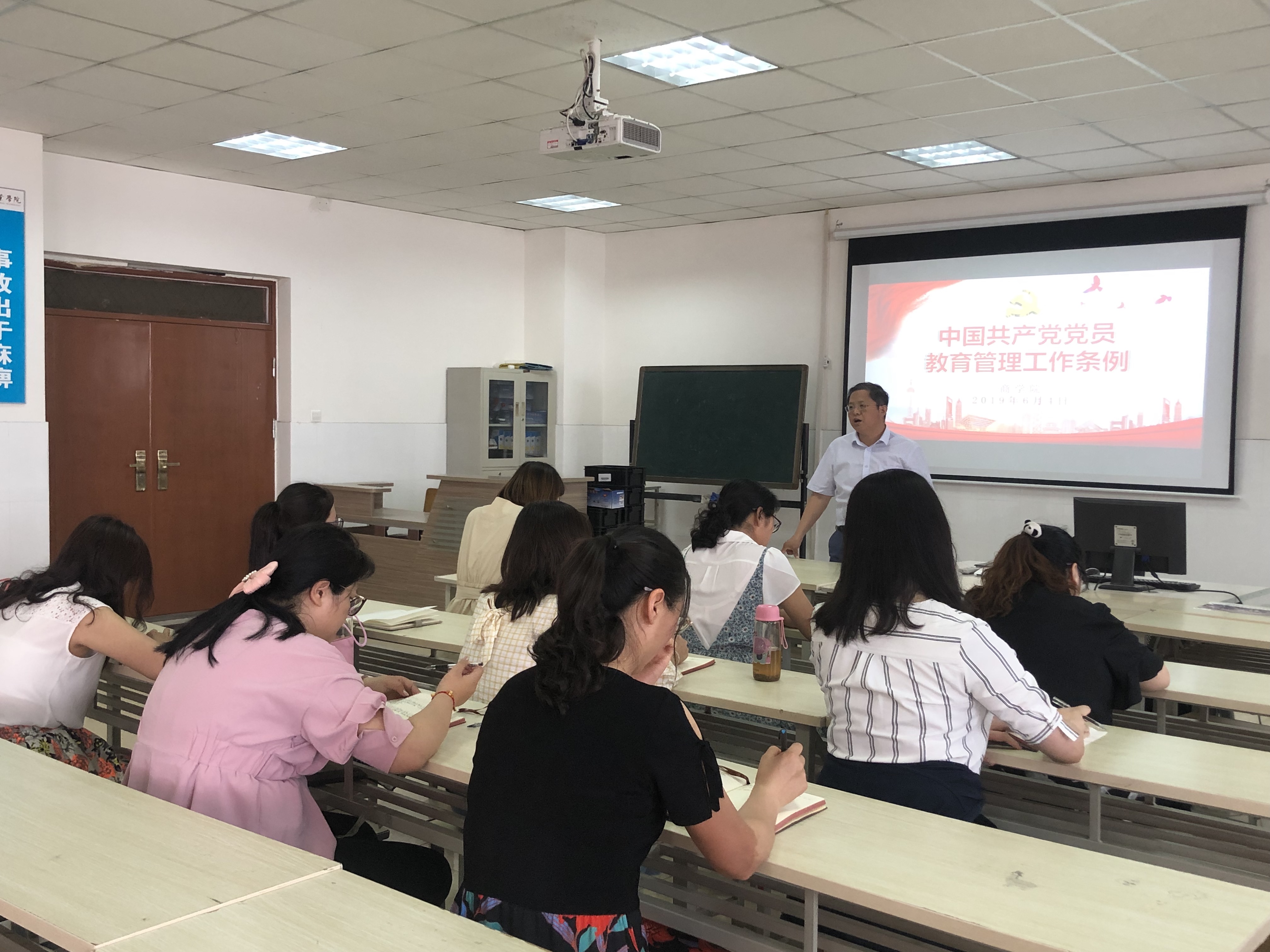 2019年6月4日下午,beat365唯一官方网站在实训室E609教室组织党员同志学习《中国共产党党员教育管理工作条例》。beat365唯一官方网站党总支书记、院长孙勇领学并主持学习会议。