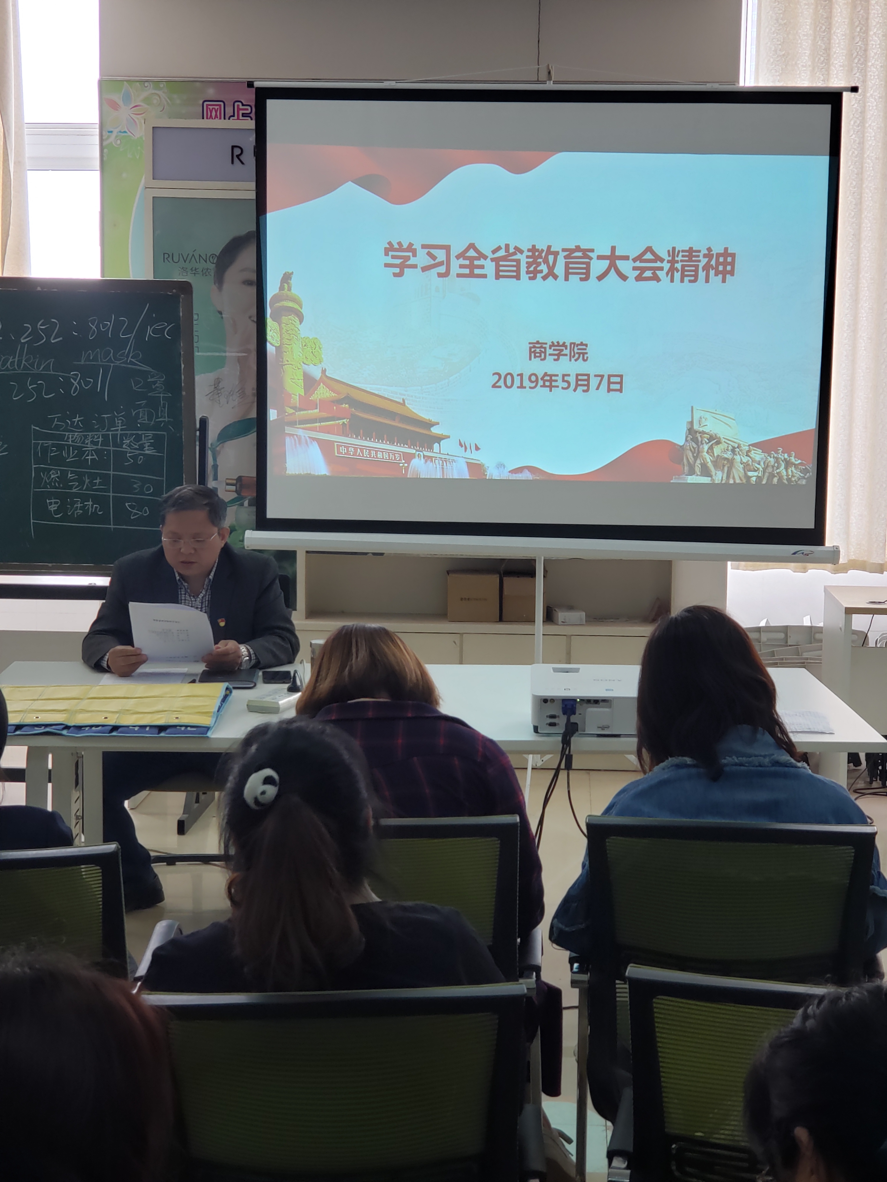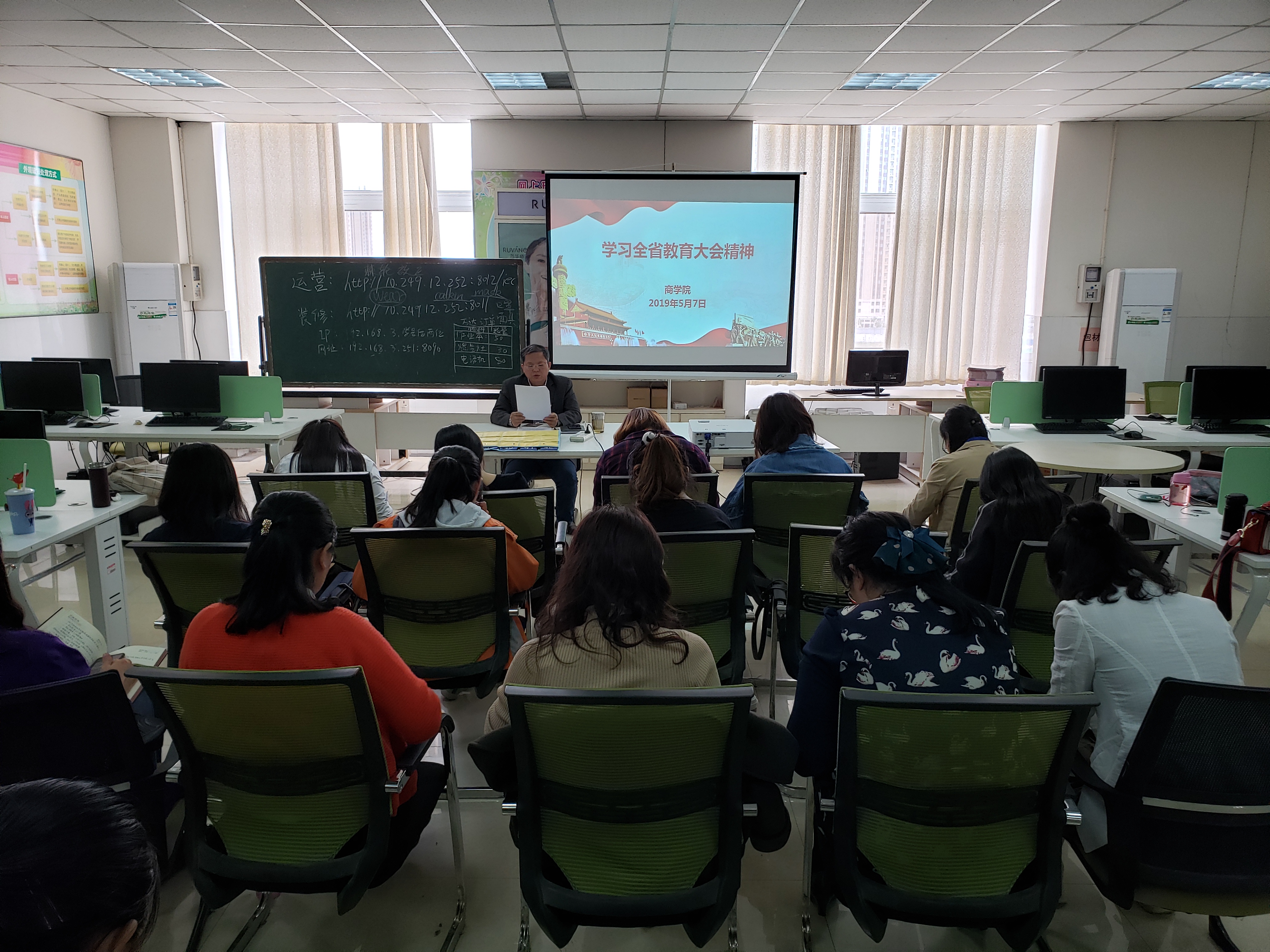 2019年5月7日,beat365唯一官方网站全体教职工在E609教室学习全省教育大会精神。beat365唯一官方网站院长孙勇同志主持会议。