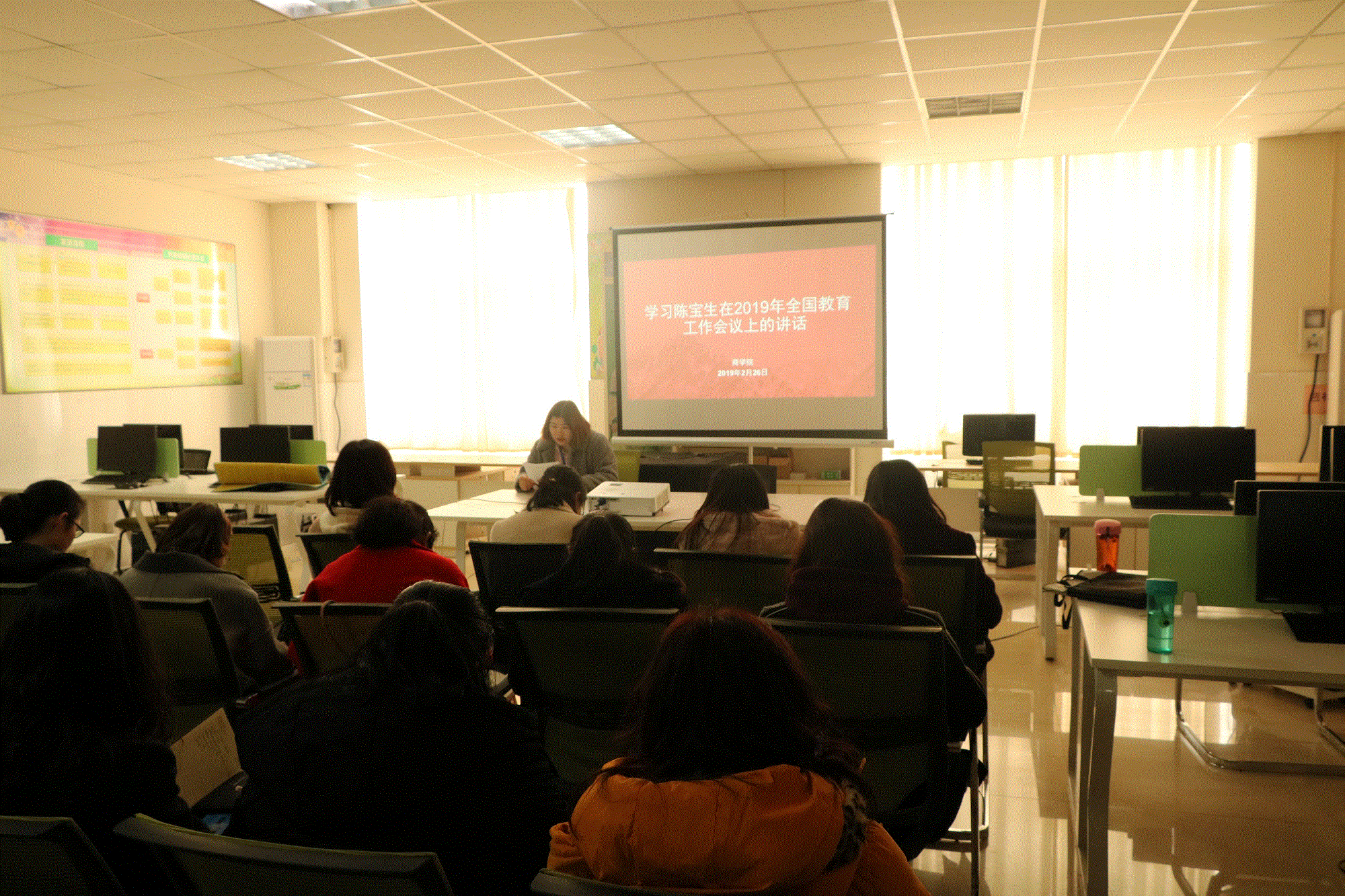 在学习前,周燕书记强调:陈宝生部长的讲话内容覆盖面广,针对性强,对于2019年的重点工作做了重点部署,为今年的教育工作指明工作方向,希望每一位老师都要认真学习,深刻总结,迎接挑战,为推进教育现代化、建设教育强国、办好人民满意的教育而奋斗,为实现中华民族伟大复兴的中国梦而努力做一名奔跑的追梦人。