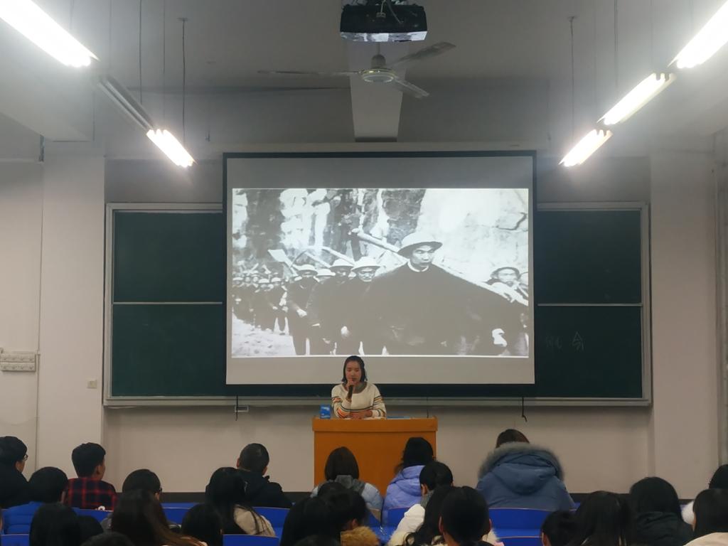2018年12月27日在b201开展的《感受红色情怀,传承中国精神》演讲比赛,由商贸学院李力老师、刘嘉慧老师、岳晓娜老师、朱海老师担任此次大赛评委,商贸学院全体入党积极分子参加活动。