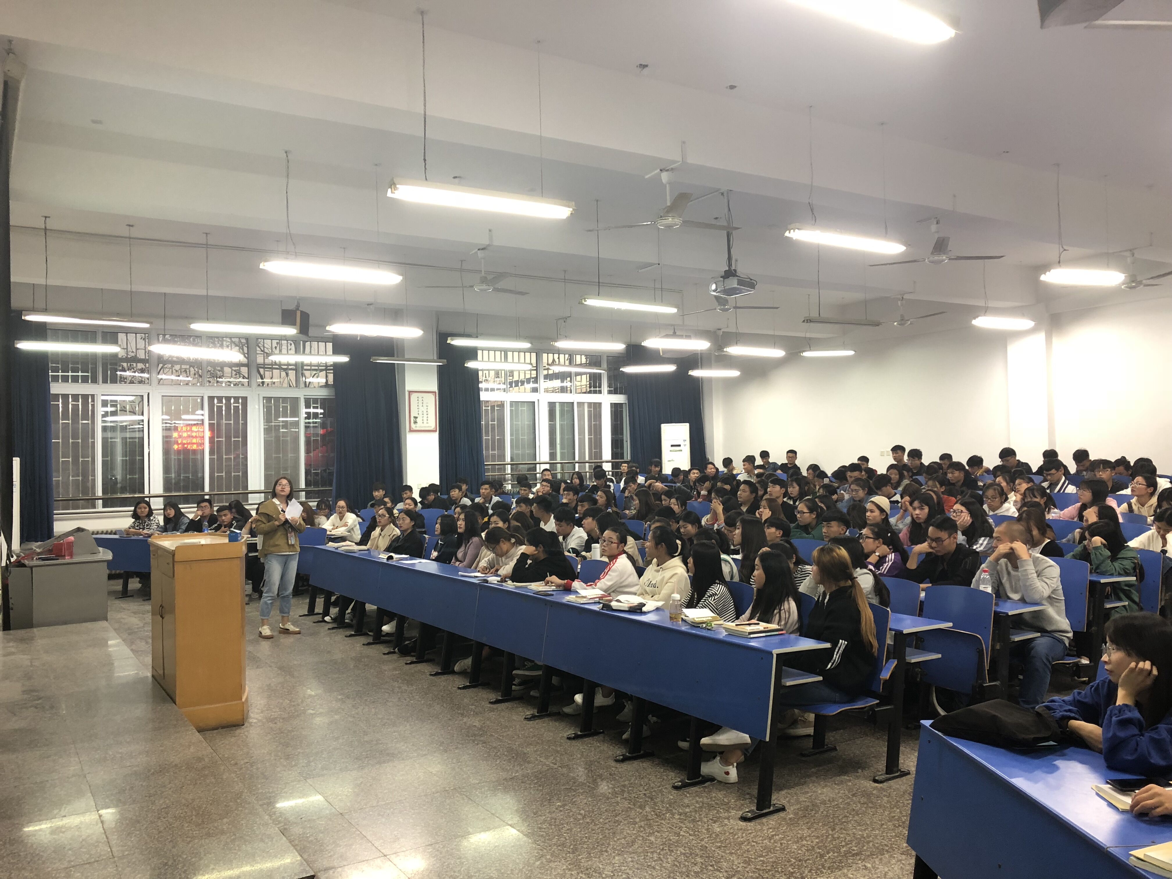 10月29号下午,beat365唯一官方网站商贸学院开展了2018级学院新生“培育社会主义核心价值观,助力梦想扬帆起航”主题讲座。讲座由两部分组成,李力老师主讲入党的基本知识主题,徐小洁老师主讲培育和践行社会主义核心价值观主题。商贸学院18级全体同学参加讲座。
