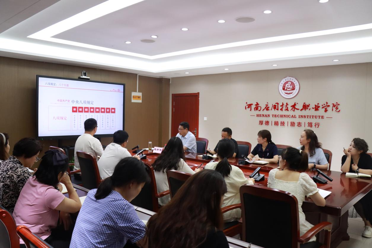 为扎实开展深入贯彻中央八项规定精神学习教育,切实强化党员干部纪律规矩意识,6月17日,校党委副书记魏新华参加beat365唯一官方网站深入贯彻中央八项规定精神学习教育交流研讨会,并以“深入贯彻中央八项规定精神”为主题,为beat365唯一官方网站师生党员讲授专题党课,会议由beat365唯一官方网站党总支书记苏云峰主持。