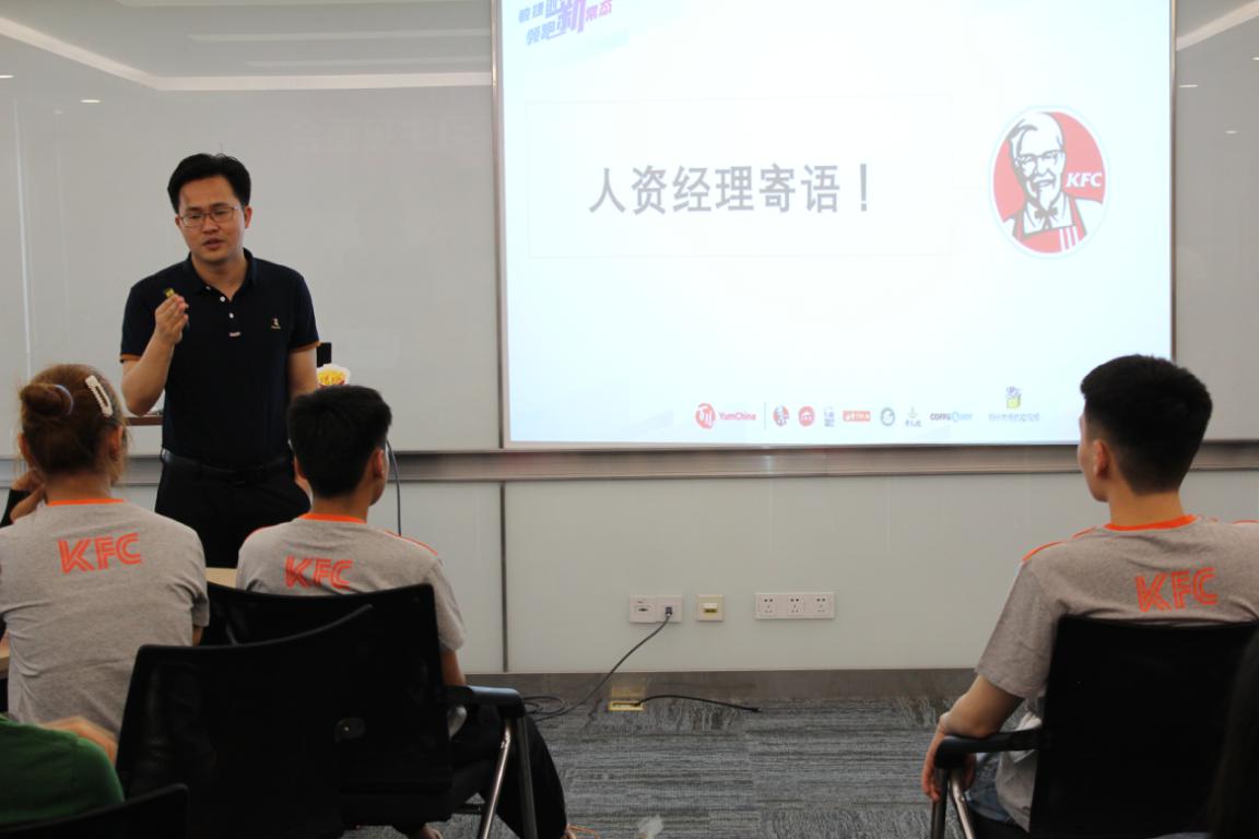 在欢迎会上,周孙文经理对我院学生的加入表示热烈欢迎。他指出,公司积极搭建人才培养平台,实现校企互利共赢,希望进一步加强与学校的合作。孙勇院长表示,我院积极探索校企合作人才培养模式,进一步加强与行业知名企业合作,深度产教融合,共同推动和引领产业发展进步,实施多元合作模式,将职业教育进行到底。在欢迎仪式上,孙勇院长深切的对顶岗实习的学生提出要求:勤学习、勤思考、肯吃苦、静下心,在优秀的平台中锻炼自己、提升能力。百胜中国控股有限公司郑州市场营运优化训练部经理闫春梅,介绍了肯德基公司的学习发展机制,从实习生、储备经理、副经理、资深副经理、到餐厅经理,每一阶段的发展计划、学习内容一目了然,让在场的学生对未来的发展规划更加清晰明确。