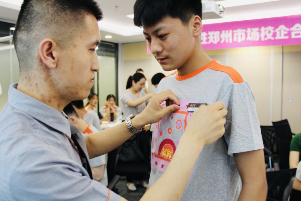 在欢迎会上,肯德基工作人员还为我院实习学生进行了员工授牌仪式,表示在带上授牌的那一刻大家就是肯德基大家庭中的一员。学生们写下对未来的愿景,并贴在公司的愿景树上,时刻激励自己朝着目标、向着未来,努力拼搏!