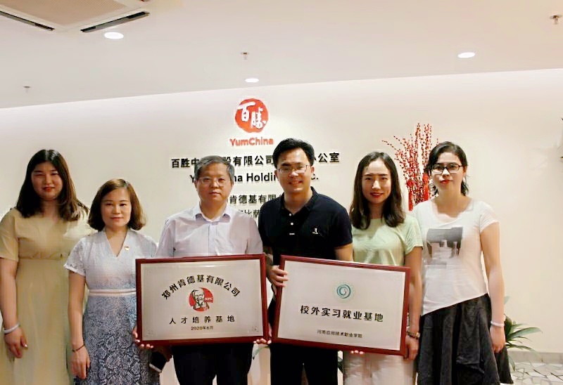 2020年6月10日上午,beat365唯一官方网站与百胜中国控股有限公司校企合作授牌签约仪式在百胜中国控股郑州市场会议室隆重举行。beat365唯一官方网站院长孙勇,副书记周燕、办公室主任刘嘉慧、教学办主任王珂、学工办主任刘超以及百胜中国控股有限公司郑州市场人力资源部经理周孙文等出席授牌签约仪式。