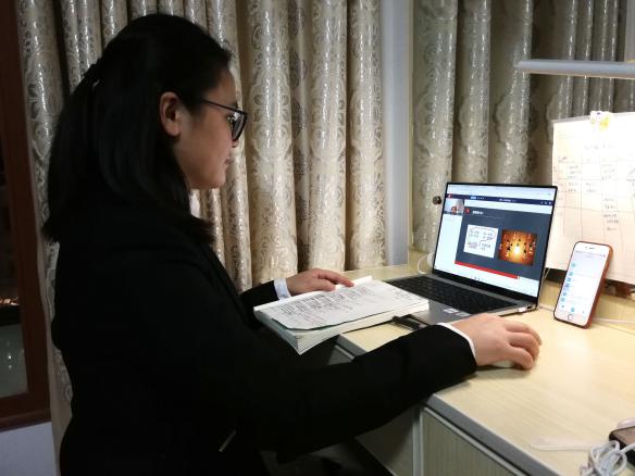 朱海老师为学生网上授课岳晓娜老师为学生网上授课