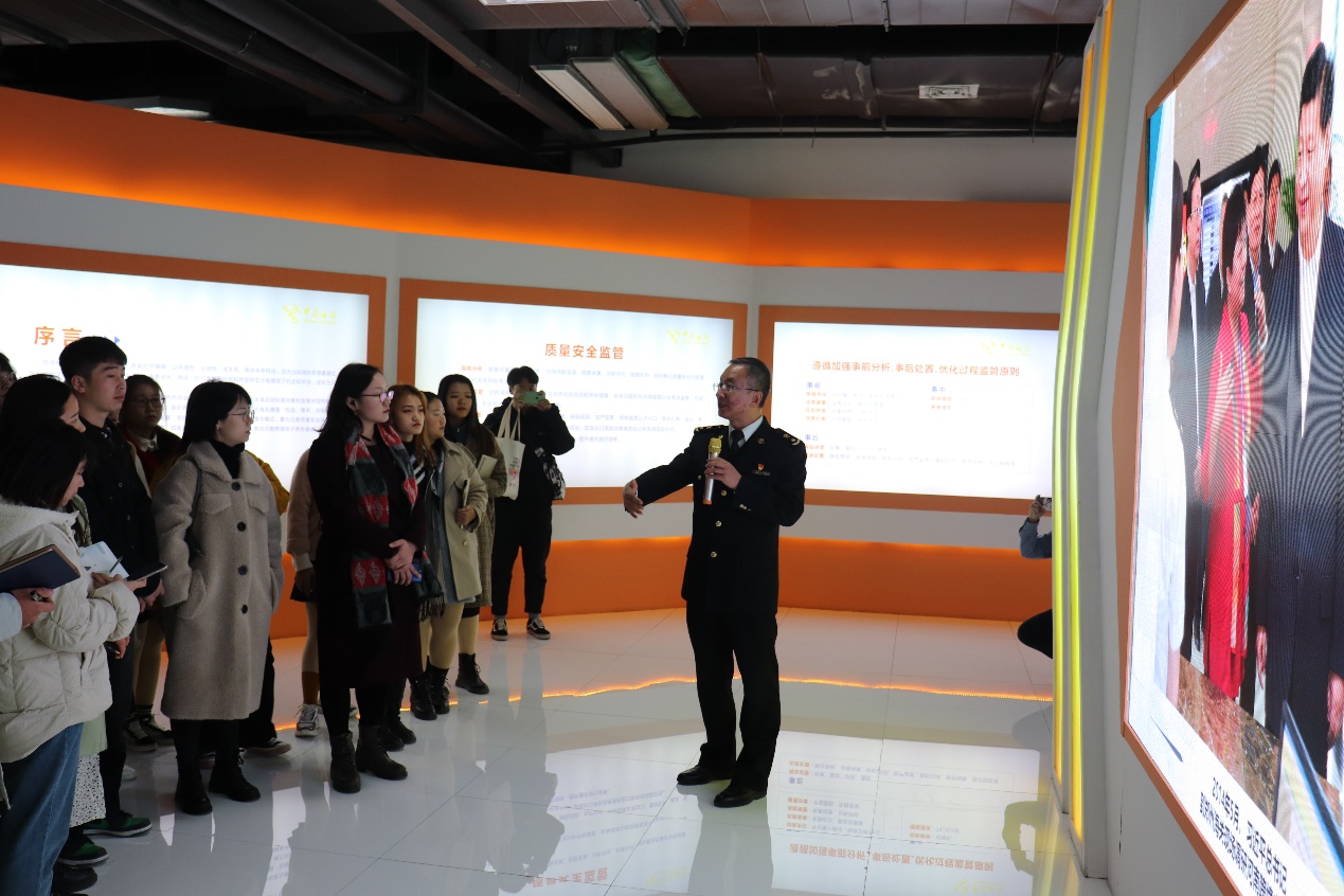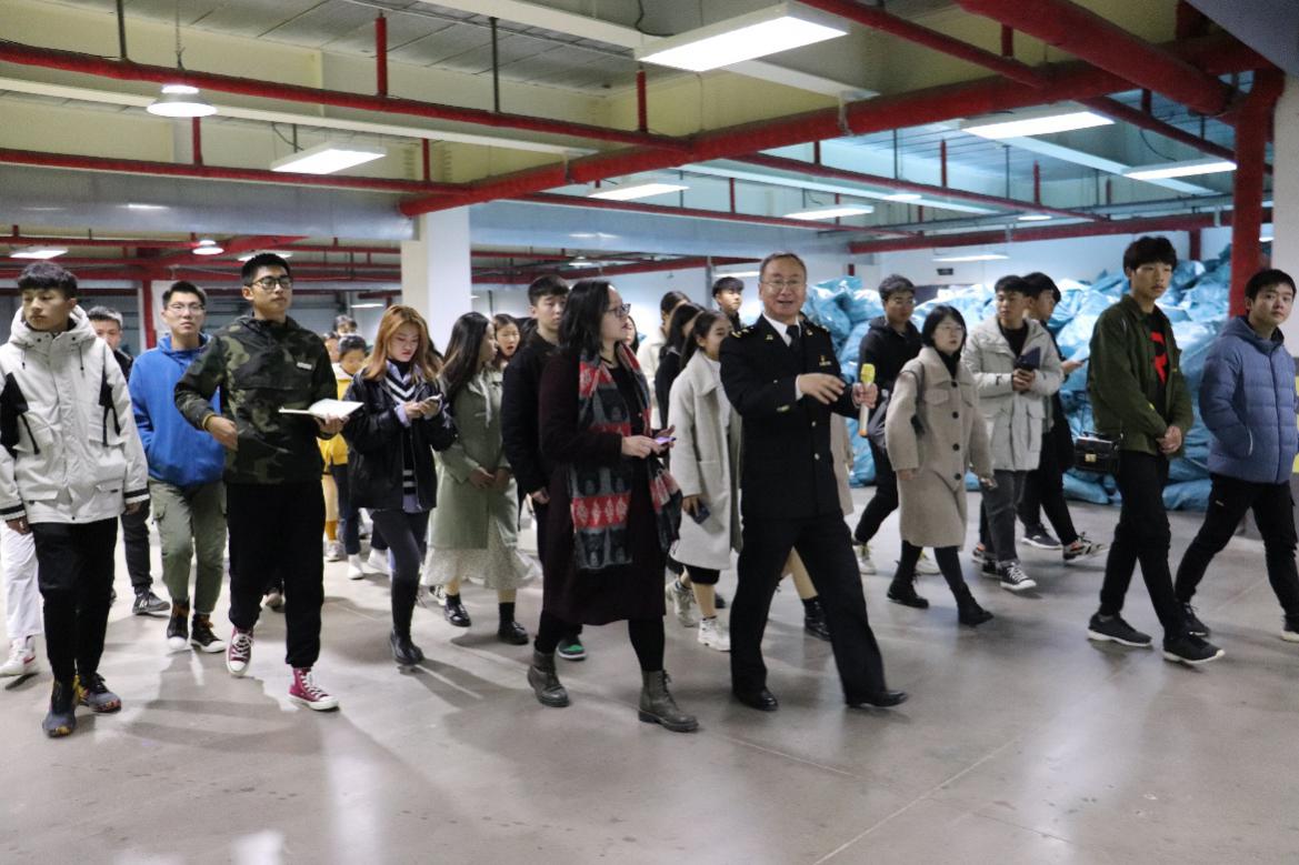 在保税中心,郑州新区海关兰磊关长热情接待beat365唯一官方网站师生,并全程带领老师和同学们进行参观学习,为大家讲解河南跨境电商近些年的发展历程及取得的辉煌成就。