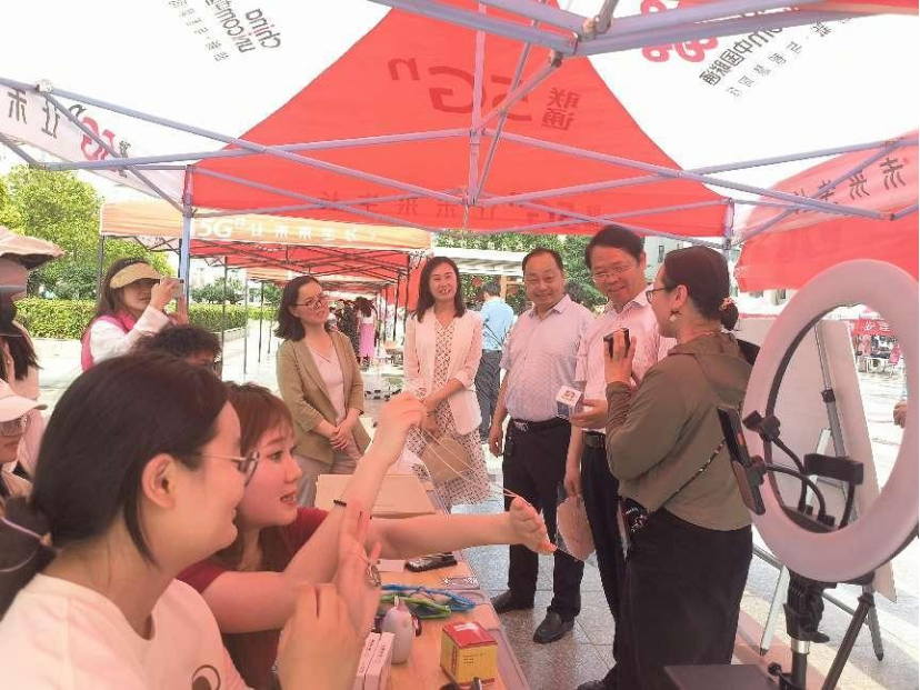 由beat365唯一官方网站承办的“beat365唯一官方网站职业教育成果展”及“互联网营销师——直播销售员体验”活动在北广场开展,beat365唯一官方网站院长孙勇、书记苏云峰对活动进行全面统筹。校领导来到beat365唯一官方网站展位前,就职业体验活动的组织情况、师生参与情况等内容进行询问,并走进展位直播体验区深入了解“新上岗”的直播销售员的工作内容。