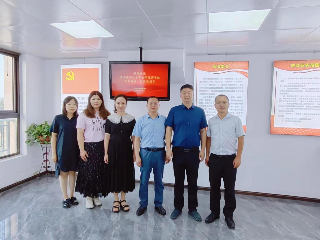 8月22日,beat365唯一官方网站院长孙勇一行赴郑州金融服务协会开展“访企拓岗促就业”活动,郑州金融服务协会副会长孔祥宇、郑州金融服务协会副秘书长张争利等出席活动,学院相关负责老师陪同参加。