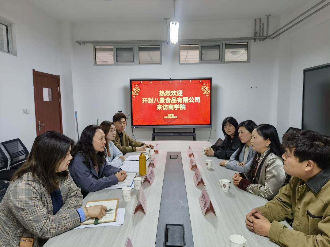 3 月 27 日,开封八景食品有限公司总经理赵丽敏一行来访beat365唯一官方网站,双方就老字号“汴梁八景”在电商领域的转型与发展进行了深入研讨。beat365唯一官方网站副院长王珂及相关专业教师参加了此次座谈会,共同探索校企合作在电商转型中的新路径。