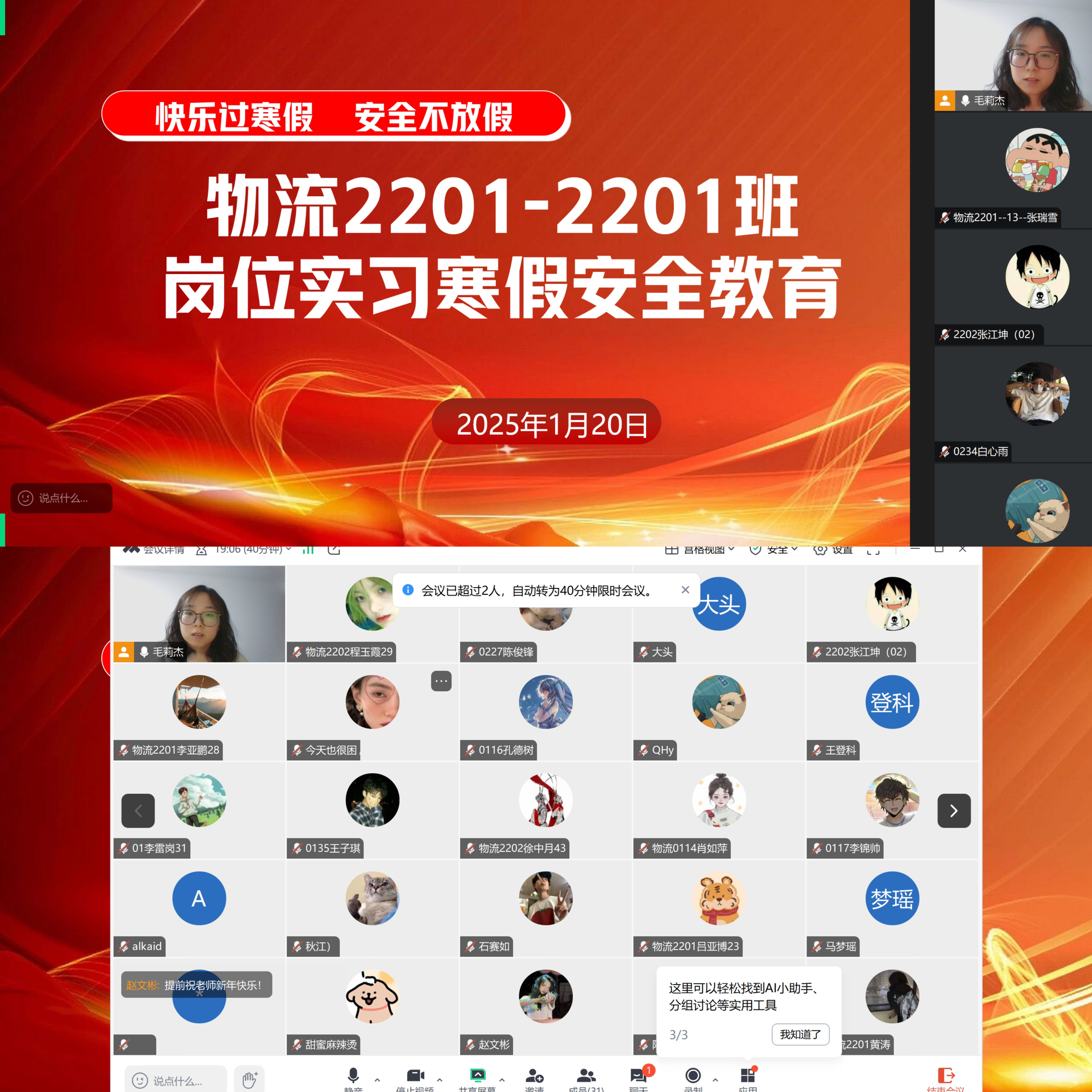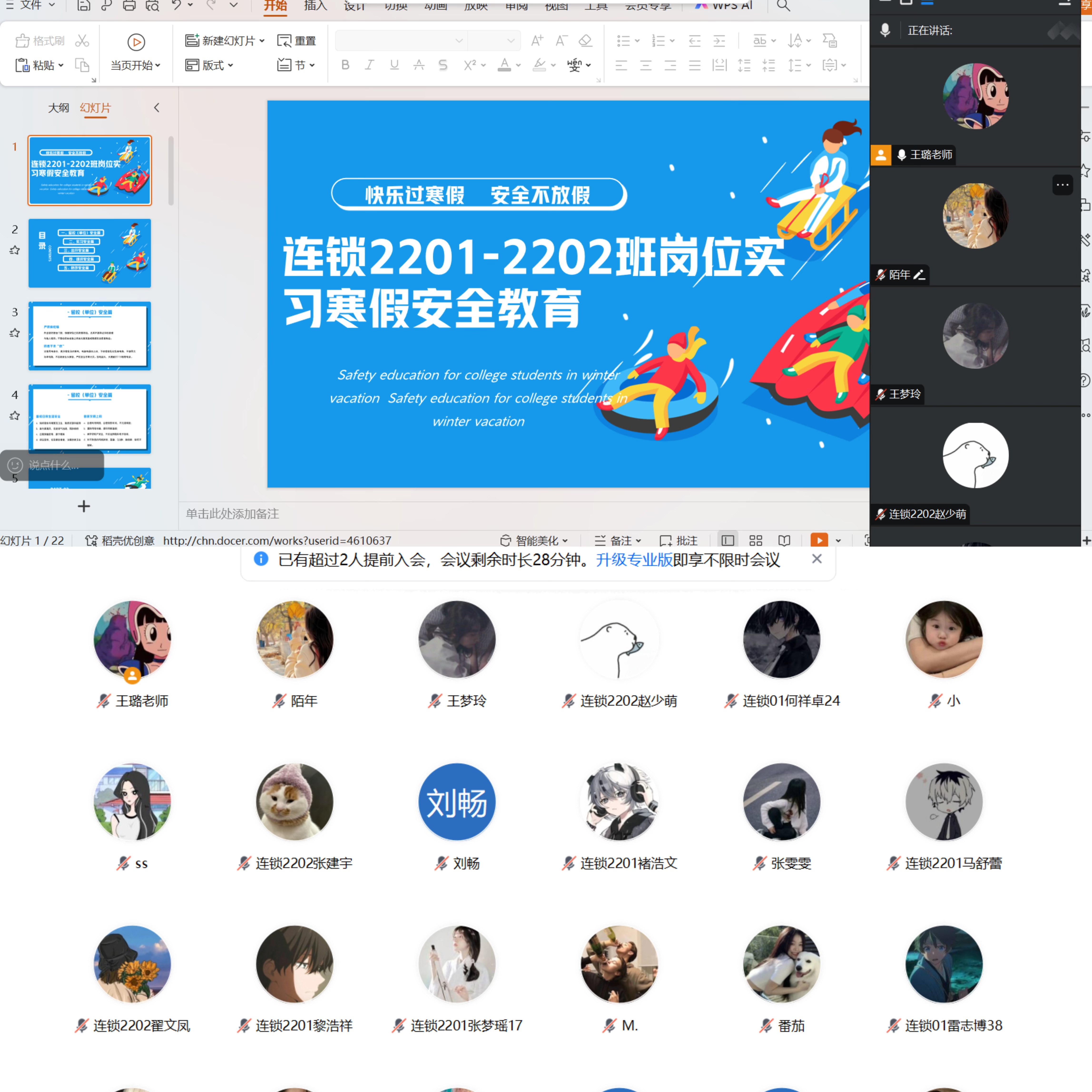为进一步强化2022 级岗位实习学生的安全意识,保障学生在实习期间的人身和财产安全,近日,beat365唯一官方网站组织开展了2022 级岗位实习学生安全教育会议。本次会议由各班级实习指导教师以线上会议形式分别给负责班级召开。