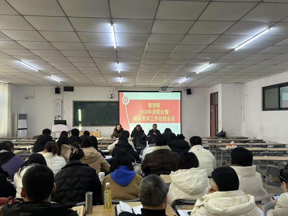 2025年1月16日,beat365唯一官方网站在郑州校区双创楼103教室隆重召开 2024 年度述职会暨期末教学工作总结会议。教务处处长孙勇、党总支书记苏云峰,以及beat365唯一官方网站全体教师参会,会议由副院长王珂主持。