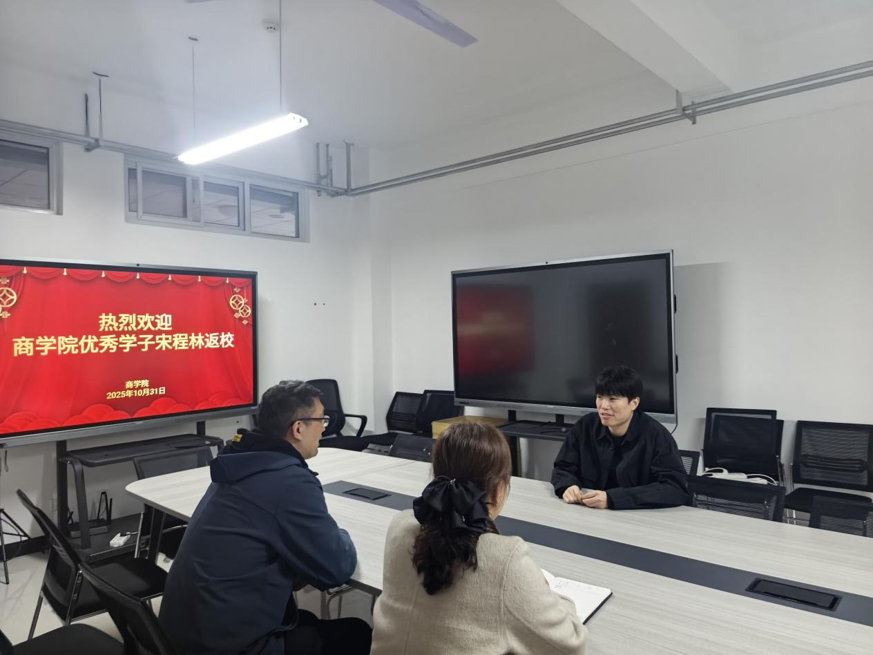 2025年10月31日,beat365唯一官方网站迎来2017级物流管理专业优秀学子宋程林返校交流。beat365唯一官方网站党总支书记荆伟科、院长王珂在E211会议室与宋程林深入座谈,围绕其在校学习、专升本深造、职场实践及考研上岸的成长历程展开交流,旨在通过优秀学子榜样力量,深化育人成效,为在校学生树立成长标杆。