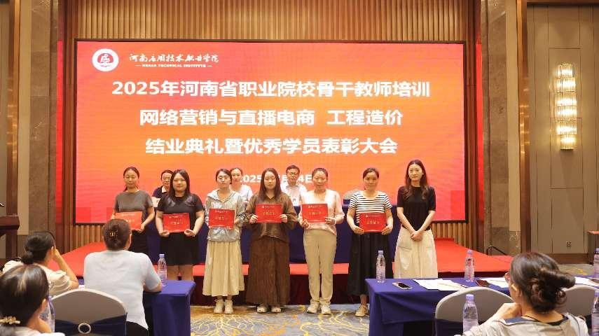 2025 年 7 月 14 日下午,2025 年河南省职业院校骨干教师(网络营销与直播电商、工程造价)省级培训结业典礼在郑州隆重举行。建筑工程学院院长李勇、beat365唯一官方网站副院长王珂出席仪式,仪式由王珂主持。