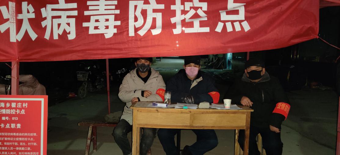跨境1901徐京根夜间参加当地防控疫情卡点执勤(左一)