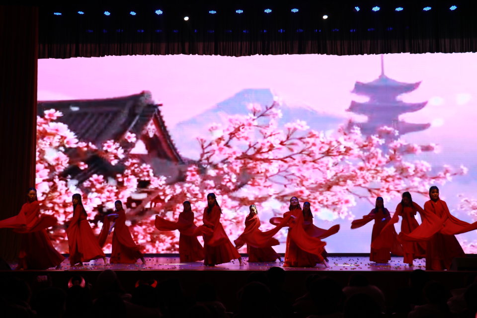 组织部的各位美女为各位观众呈现的优美的舞蹈《九张机》,向各位观众展现商贸学院女生的美丽舞姿。