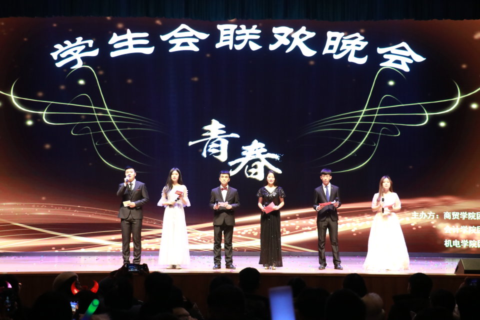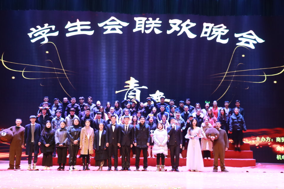 2019年1月1日晚,商贸院学生会联合会计学院和机电学院学生会一起举办2019年“青春”联谊晚会,在beat365官网礼堂隆重举行。商贸学院书记周燕书记、团总支书记李力老师、以及商贸学院各班级辅导员亲临现场观看了此次晚会。