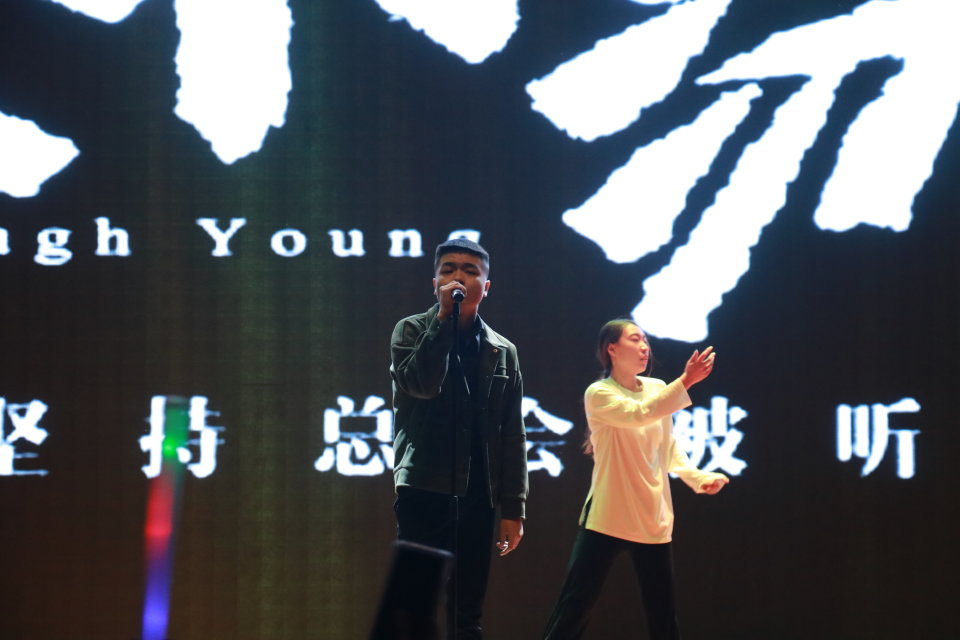 学习部的两位帅哥给全场观众表演了精彩的脱口秀《我不是第一名》,瞬间提起全场的笑点。