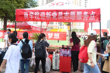 新生报到期间,商学院师生志愿者在学校门口进行“一对一”志愿服务,校园内设置迎新党员志愿服务点,为新生提供行李暂存服务。智能化的疫情防控系统保证了疫情防控工作要求的同时也使入校流程更加简捷。入校后,beat365唯一官方网站师生志愿者帮助新生答疑解惑,向新生进行学院介绍、专业介绍、校区设施环境介绍等,帮助新生搬运行李,收集档案资料,提醒报到注意事项,并细致办理登记手续。学院老师和护理学院、化工学院的志愿者们用实际行动为新生树立了积极奉献、互帮互助的朋辈形象。