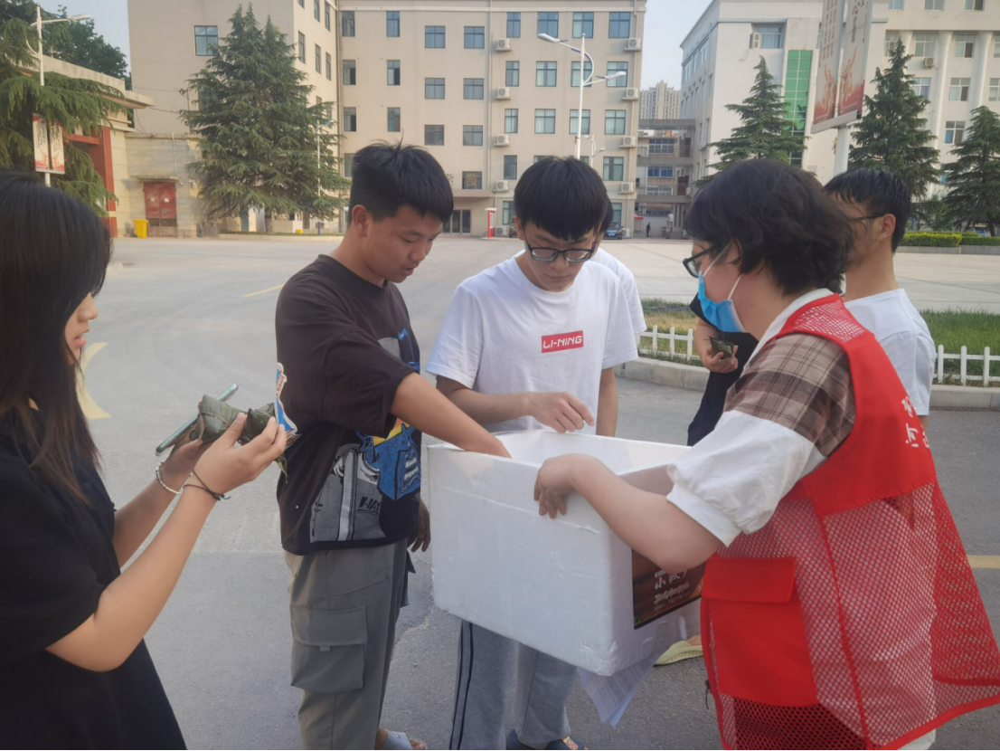 因疫情防控需要和考试要求,专升本考生已经在学校闭环管理9天,辅导员老师感受到同学们紧张的复习和备考气氛。为让孩子们缓解情绪,感受节日氛围,辅导员老师早上八点钟就开始联系采购粽子和麻叶。晚饭时间,软糯的粽子和焦酥的麻叶整齐摆放在发放现场。beat365唯一官方网站辅导员一一为学子们发送粽子和麻叶,并有寓意的送上祝福:“祝你们一举高‘粽’”“功名得‘粽’”,现场节日气氛浓厚。收到粽子后的同学们都笑容满面、开心不已,有的当场剥开粽子咬上一口,软糯香甜,频频点赞,有的与粽子合影、摆拍,并在自己的社交平台上“炫母校”来表达愉快的心情。同学们纷纷表示“学校为学生考虑得这么周到,粽子很美味,麻叶很酥脆,作为应院的考生很幸福,我们也成了别人羡慕的同学!”