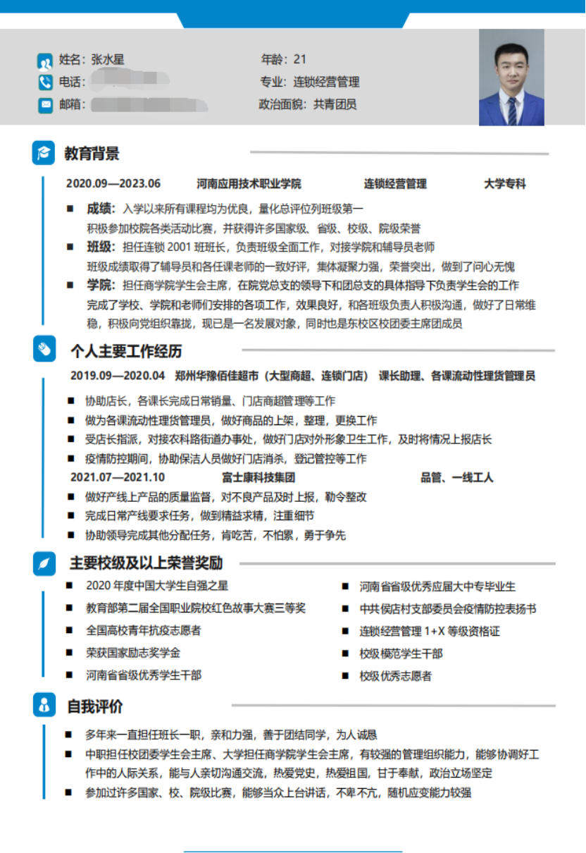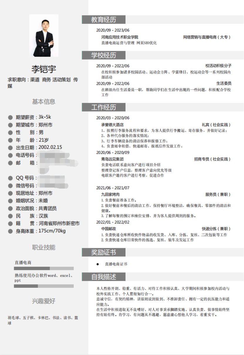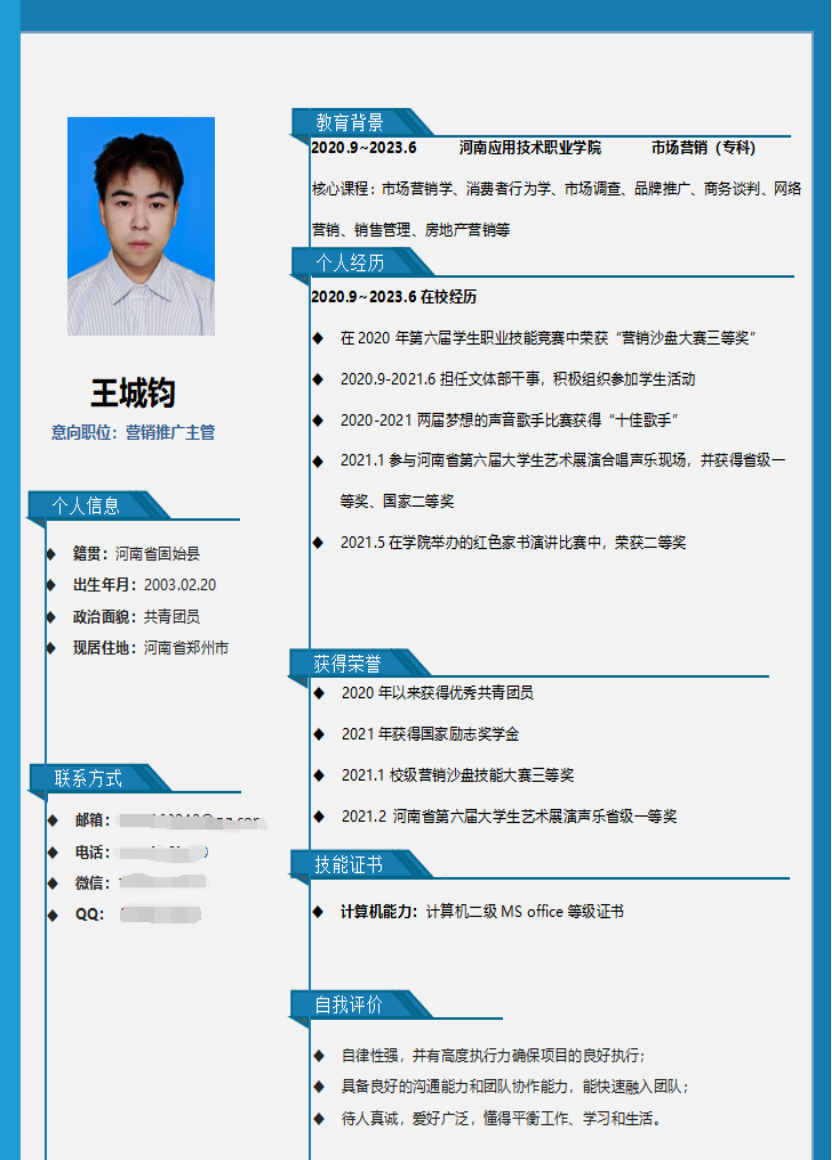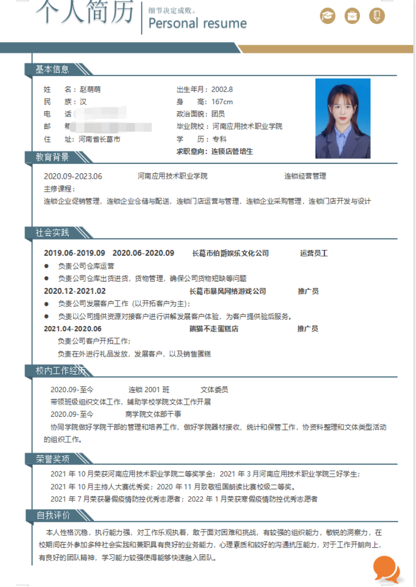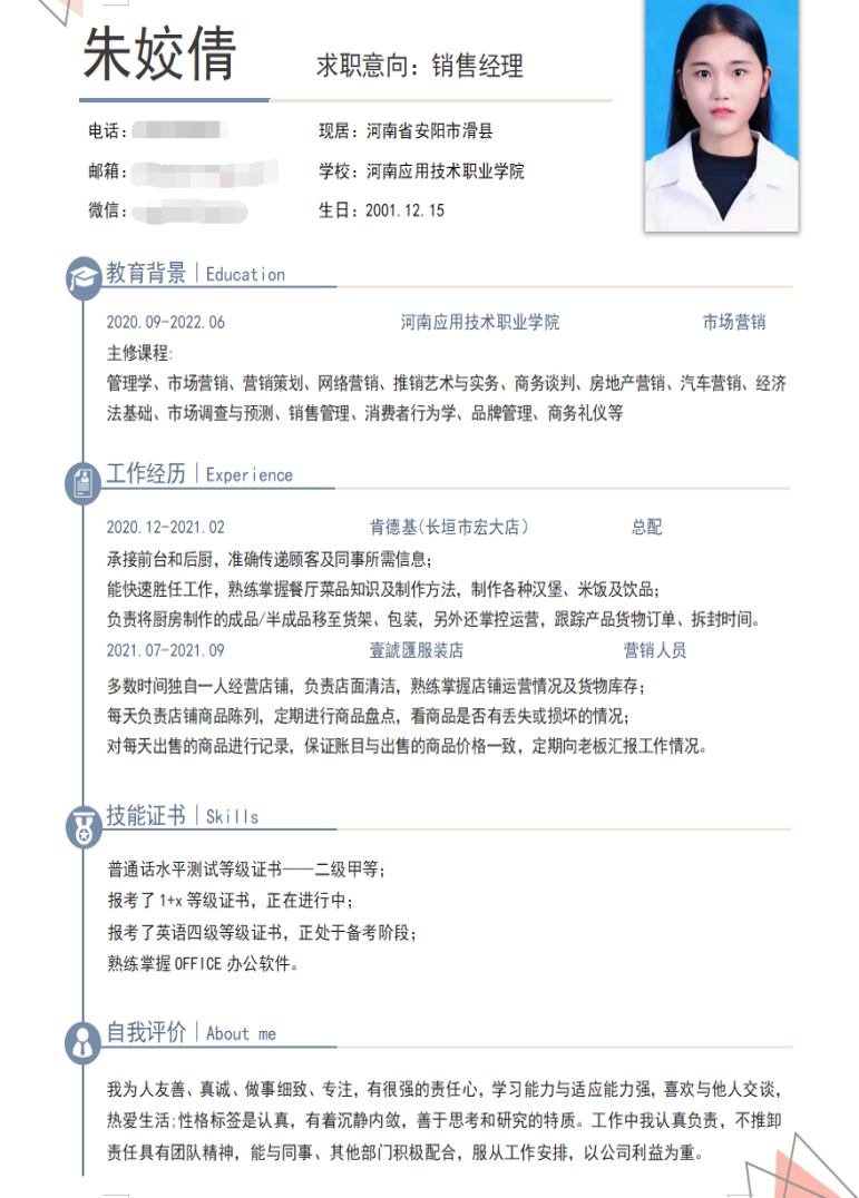 简历是展示自我的一块求职“敲门砖”,为帮助beat365唯一官方网站20级学生增强就业意识,充分做好就业准备,制作出优秀的简历并能在求职过程中成为自身的“重要法宝”。beat365唯一官方网站开展了第五届简历设计制作大赛,beat365唯一官方网站20级全体学生参与了简历制作。下面我们来共同欣赏20级求职小可爱们的优秀简历吧!