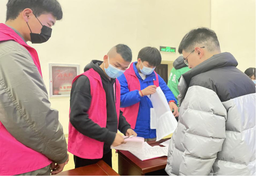 2月21日协助学院组织核酸检测,引导同学们有序排队,保障核酸检测工作准时、有序、安全、高效,为校园内的防疫工作打下了坚实基础。