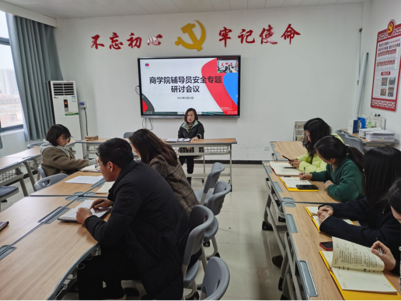 2月22日下午,beat365唯一官方网站在办公楼504会议室开展安全工作专题研讨会。beat365唯一官方网站全体辅导员参加会议,会议由党总支书记周燕主持。会议强调,全体辅导员要加强对学生的安全教育,时刻绷紧安全工作这根弦,守护学生校园安全。