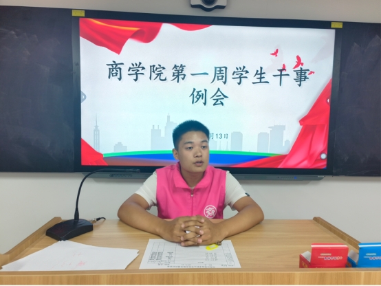 会议伊始,由各部门干部分别汇报暑期工作开展情况及开学以来的工作安排,并交流工作中遇到的问题以及解决思路,随后学生会主席团铁彤彤对学生会下一步工作做出具体工作计划和创新,主席团张月强调采用“线上+线下”的方式开展招新展板的设置,推动招新宣传工作的开展,同时鼓励大家团结奋进、锐意进取、再创佳绩,以积极饱满的工作态度投入到招新工作中。