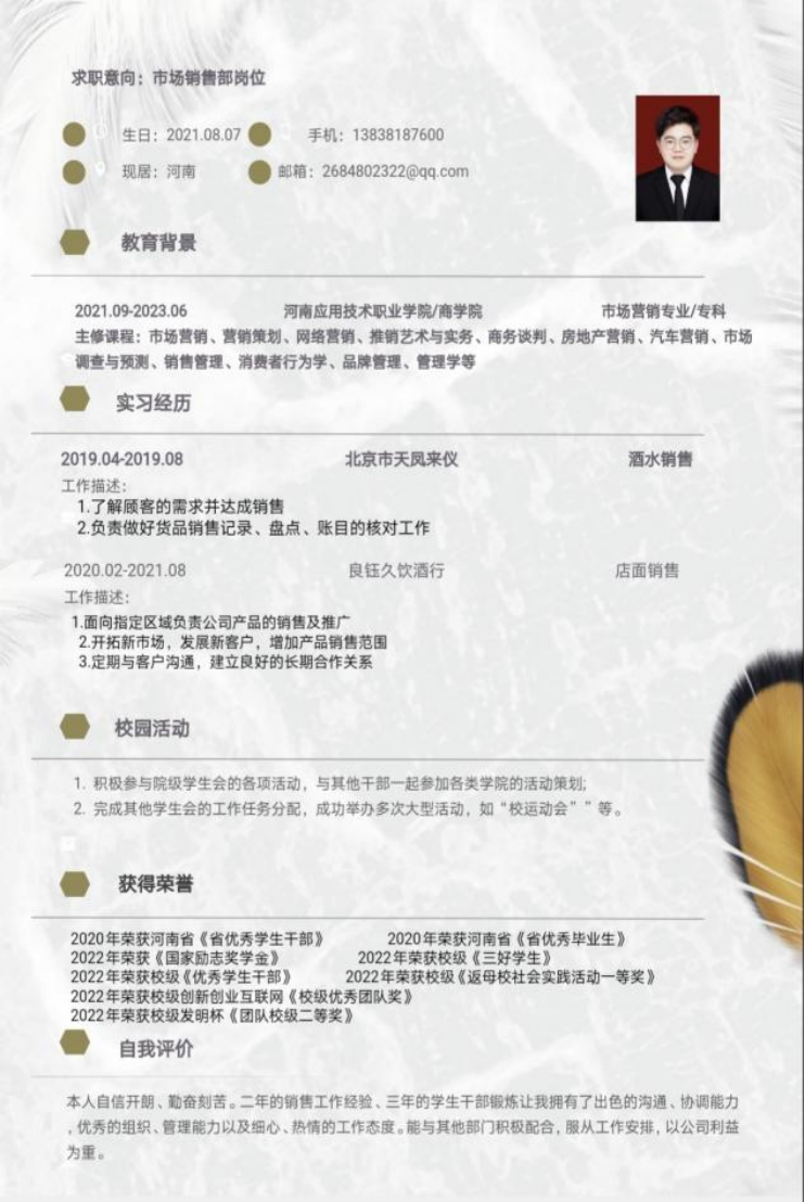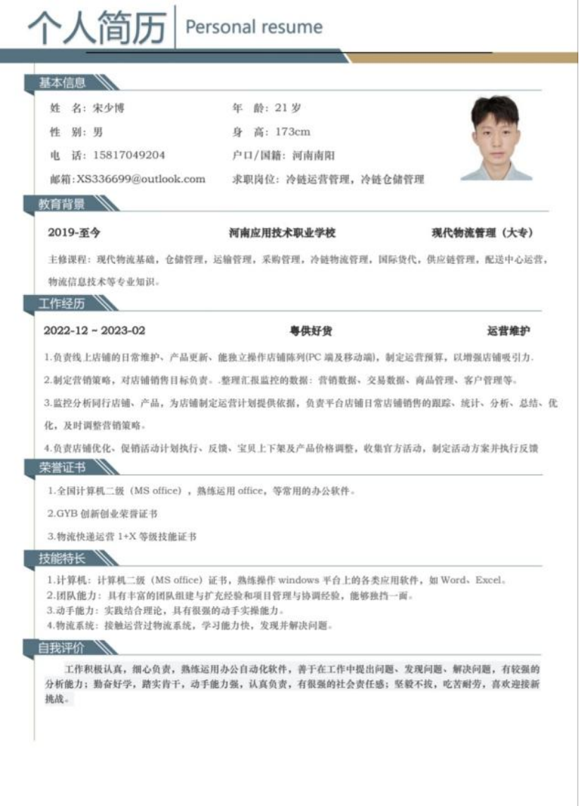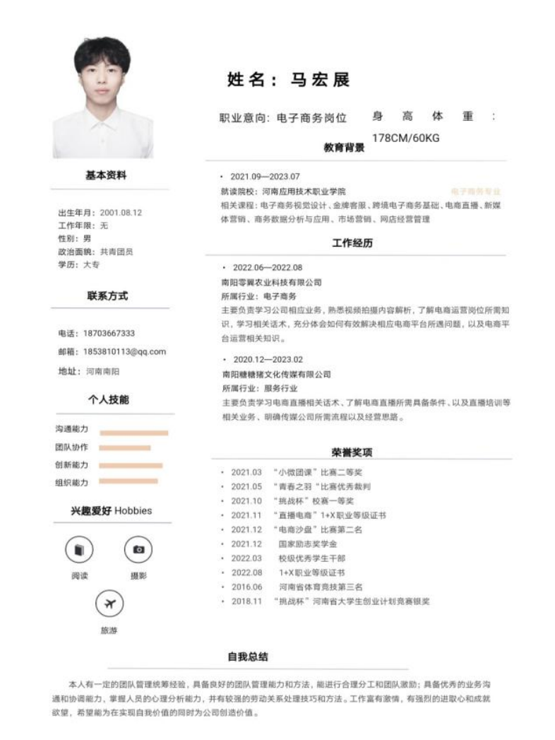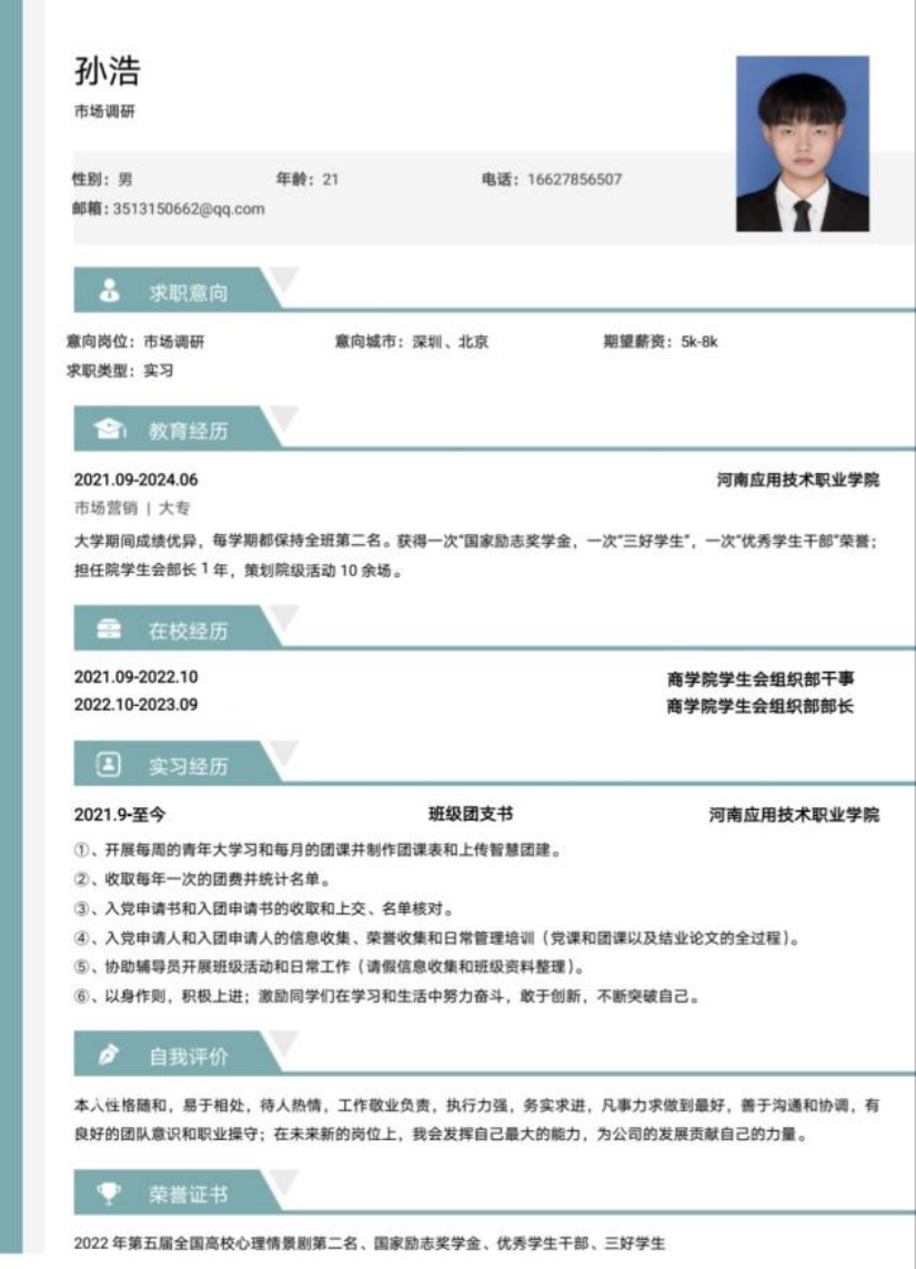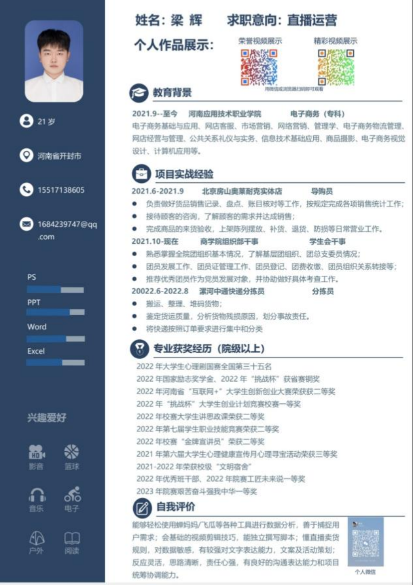 为帮助学生增强就业意识,普及就业技巧,增强就业技能,充分做好就业准备,beat365唯一官方网站举办“第六届大学生简历设计制作大赛”,通过比赛大多数同学能够掌握简历设计及撰写要领,同学们的作品外观设计巧用心思,整洁美观又能凸显专业及个人特点。让我们一起来看看部分获奖者的优秀简历吧。