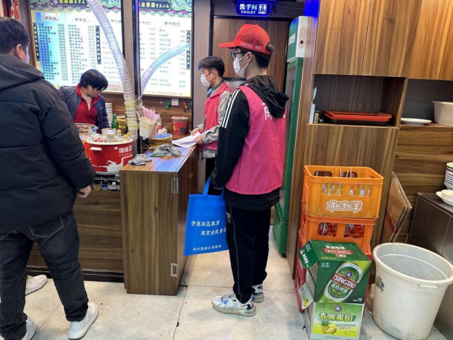 随着网络信息时代的飞速发展,社区防诈骗工作难度与工作量一直在持续增长,网络信息眼花缭乱,电信诈骗新形式层出不穷。此次反诈骗宣传活动是主要针对春藤社区周边的商户,志愿者们两人一组高效开展工作。