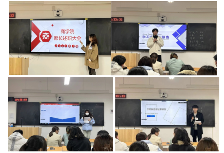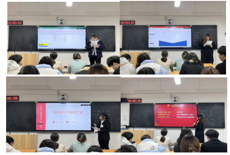 会议过程中,学生会各部门部长们从工作内容、工作成效、存在不足以及对未来工作的展望等方面详细地回顾了过去一年的工作情况。各部门汇报内容脉络清晰,内容详实,全面总结本学期在学生组织建设、校园文体活动和服务同学成长等方面所取得的成绩,同时梳理了目前工作中所存在的不足与短板,进一步明确了下一步工作开展思路及改进措施,充分展现出学生组织的活力和创造力。