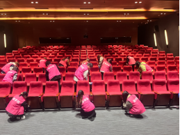 同学们分工合作、互相配合、齐心协力用自己的实际行动弘扬志愿者精神。在大家的共同努力下,被打扫的场馆变的更加干净、整洁。