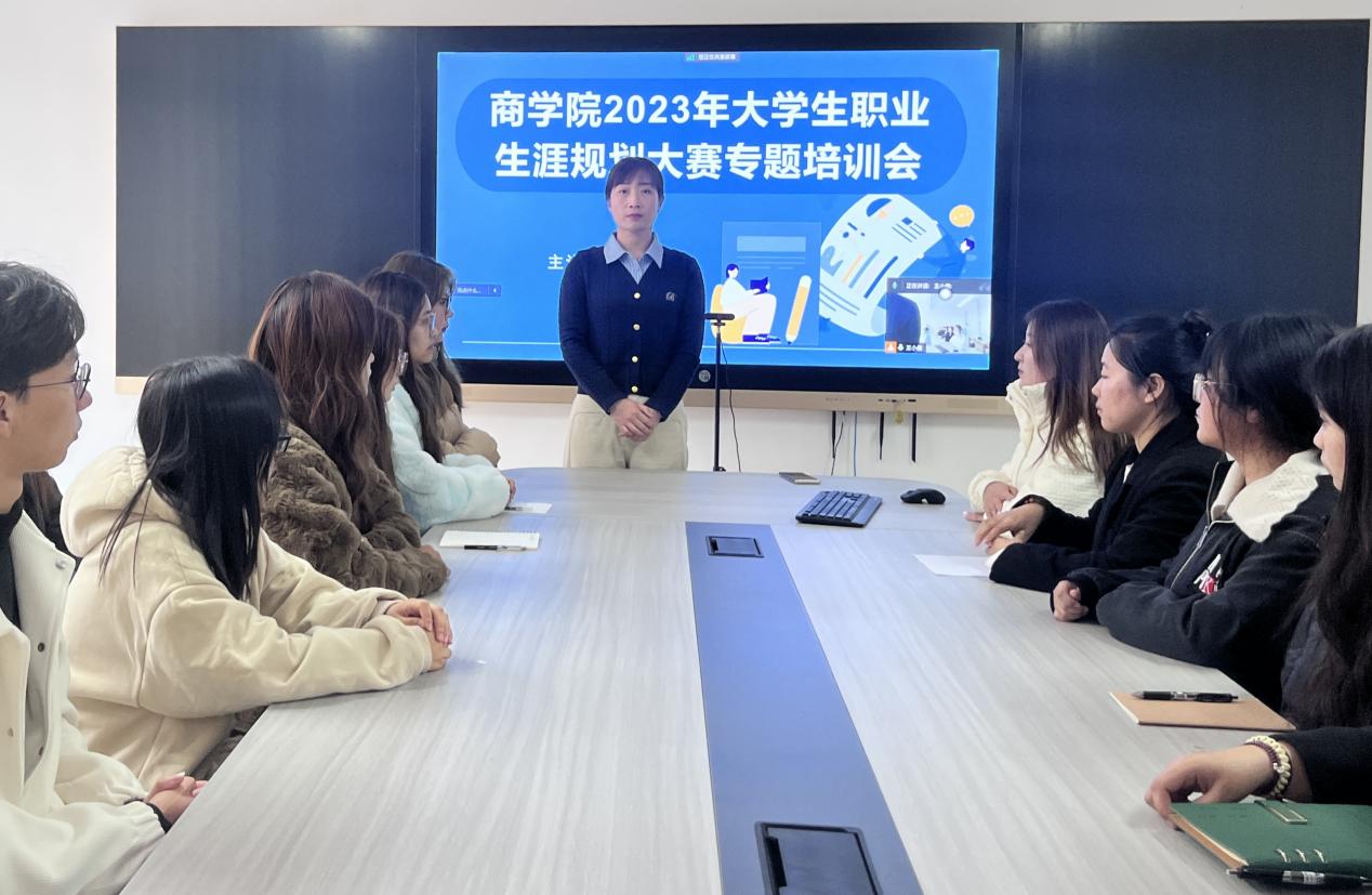 为保证beat365唯一官方网站2023年职业生涯规划大赛顺利开展,引导学生正确定位自身职业发展方向,鼓励学生树立正确的人生观、价值观、就业观,11月15日,beat365唯一官方网站组织有意向参赛学生在开封校区B202会议室开展大学生职业生涯规划大赛专题培训,2023级学生线上同步参加,此次培训由beat365唯一官方网站党总支副书记王倩主讲。